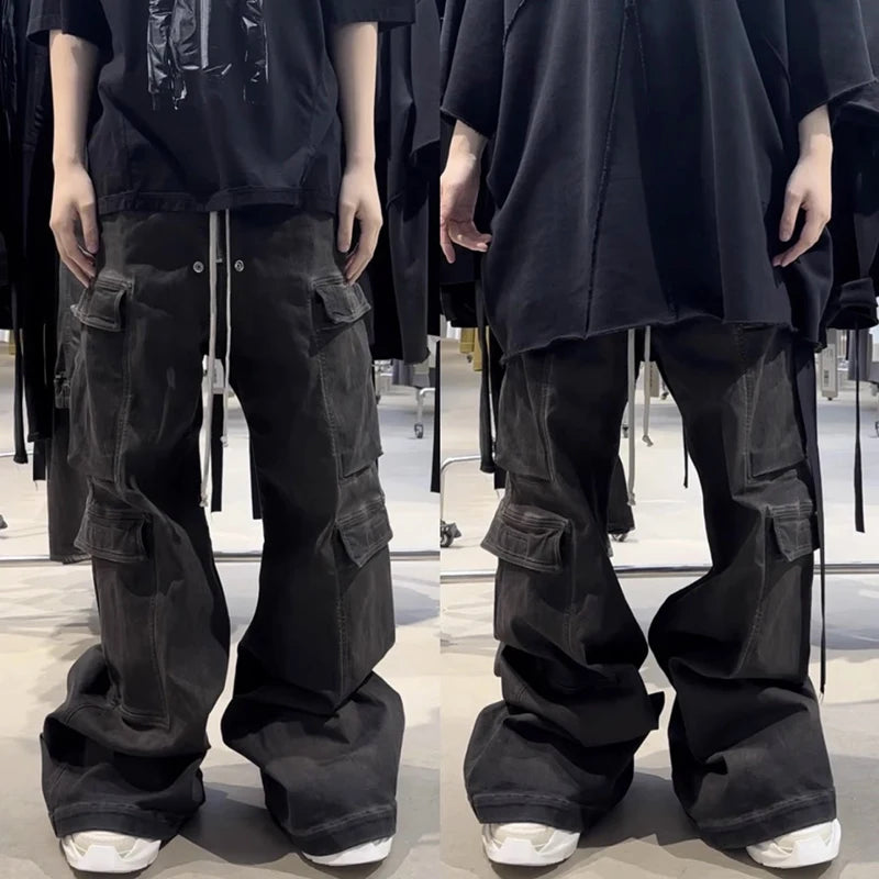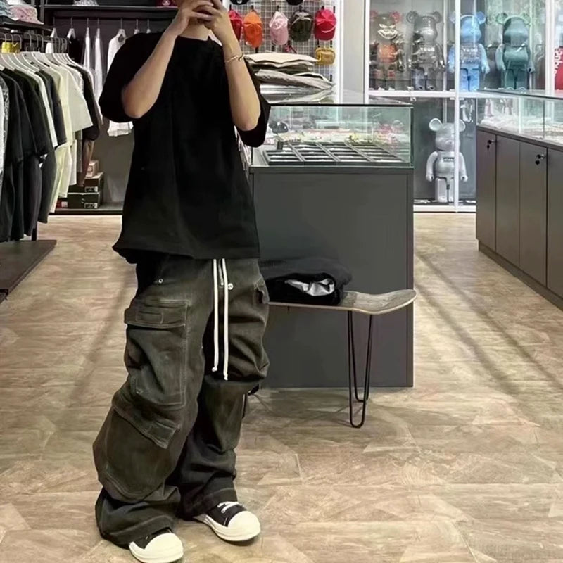Step up your fashion game with our RO Style Ribbons Wide Leg Multi-Pockets Baggy Jeans, a standout piece in modern streetwear. These smoke grey jeans offer a blend of functionality and style, perfect for men who appreciate both practicality and contemporary fashion.