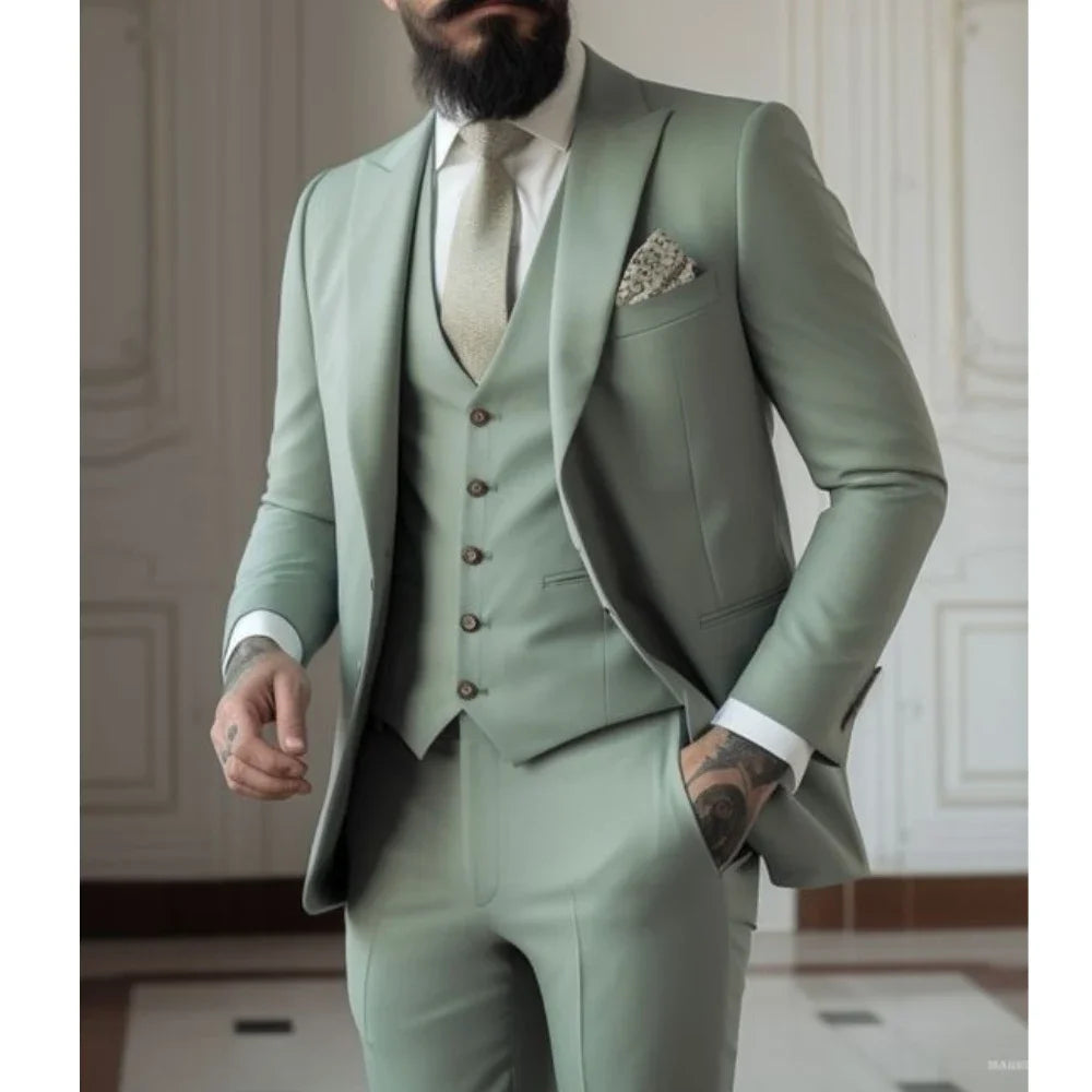 Radiate Confidence: Green Men's Slim Fit 3-Piece Wedding Groom Tuxedo