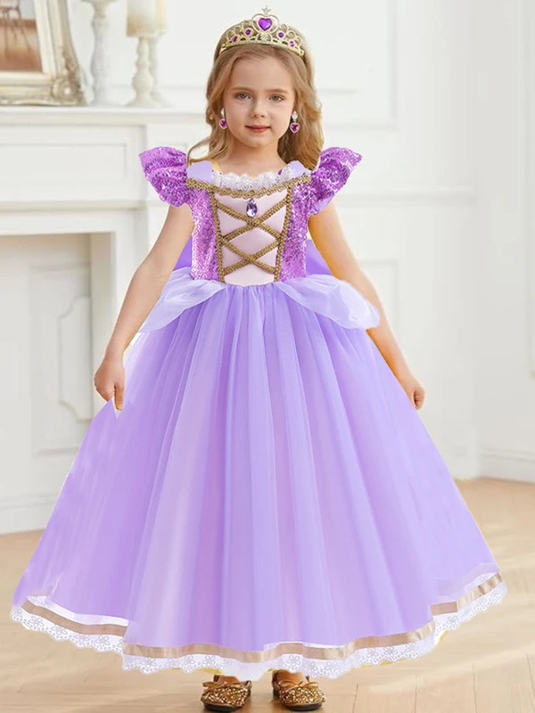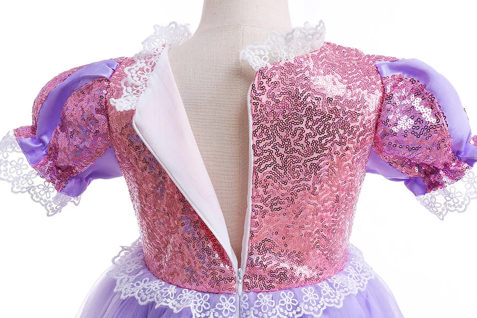 Sequined Princess Party Ball Gown for Girls Festival Halloween Cosplay Tangled