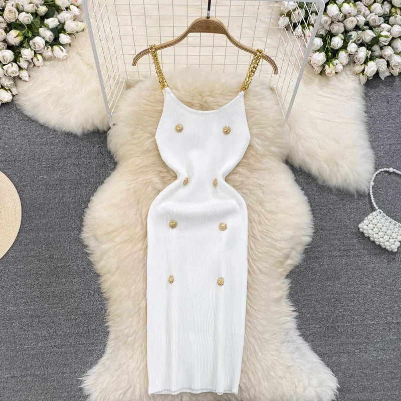 Crafted from high-quality knit fabric, this dress offers a snug yet comfortable fit, ensuring you look and feel your best. The sleeveless design is perfect for warmer weather, making it a must-have for your collection of summer dresses. Whether you’re looking for ladies casual dresses or something more elegant, this dress has you covered.