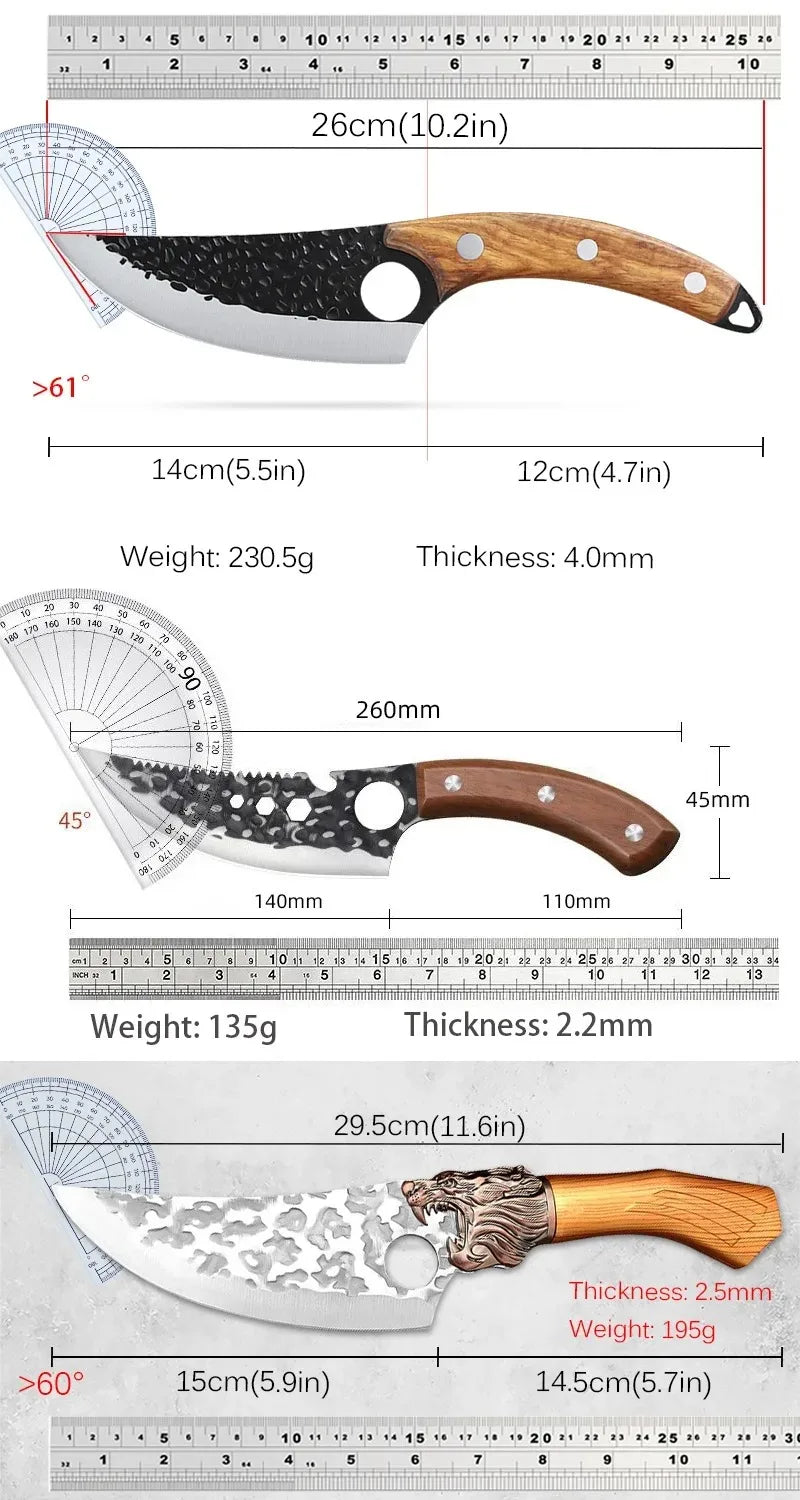 Multi-Purpose Functionality: This knife is perfect for a variety of tasks in the kitchen. Use it for everything from butchering meat to slicing through tough vegetables. Whether you're a chef with knife skills or just starting your culinary journey, this tool seamlessly integrates into your collection of kitchen knives.
