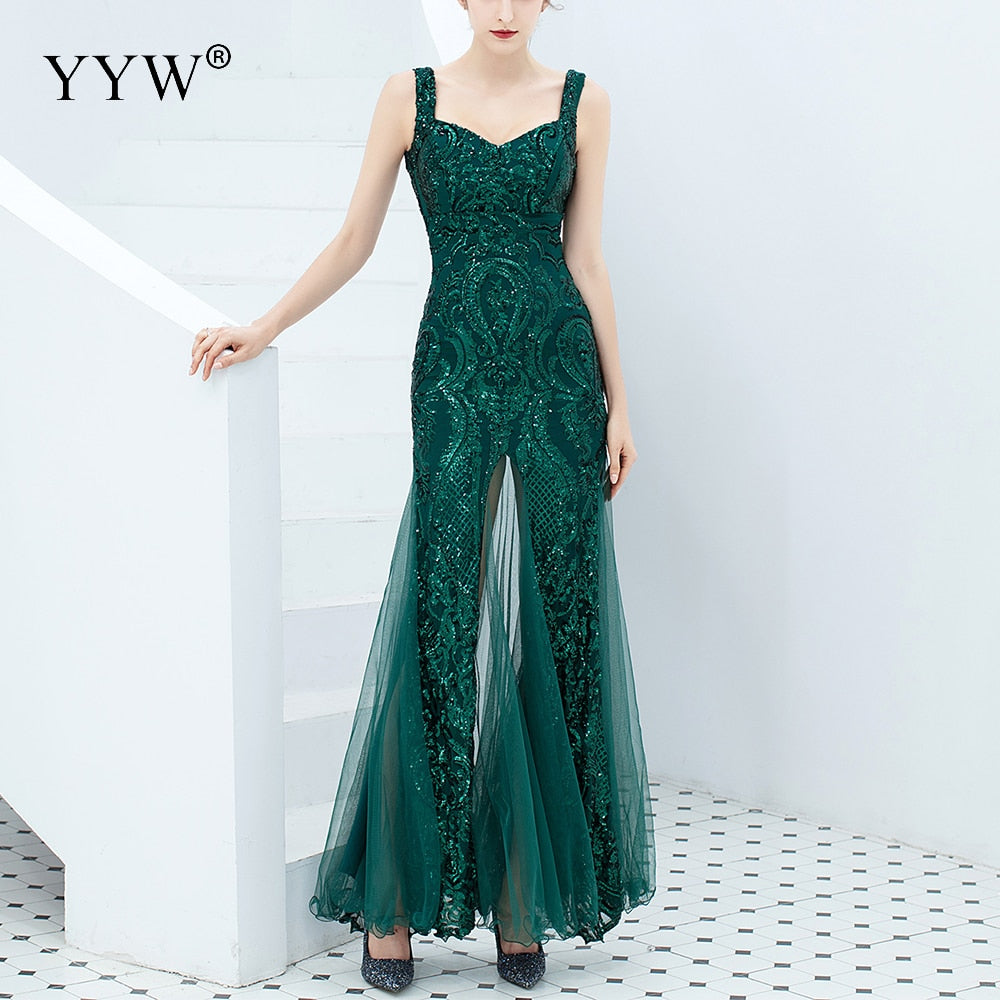 Introducing our stunning Gold Sequined V Neck Sleeveless Elegant Evening Dresses, designed to make you the star of any event. This captivating piece from our exclusive collection of evening wear dresses is perfect for those looking to make a grand entrance. Whether it's a prom, wedding, gala, or any special occasion, this dress promises to turn heads and make you feel like royalty.
