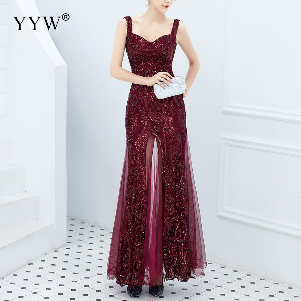 Elevate your evening wear with our Gold Sequined V Neck Sleeveless Elegant Evening Dresses. Shop now and make a statement at your next event. Use promo code we10 for an extra 10% off your purchase. Embrace elegance and sophistication with our stunning collection of evening dresses.