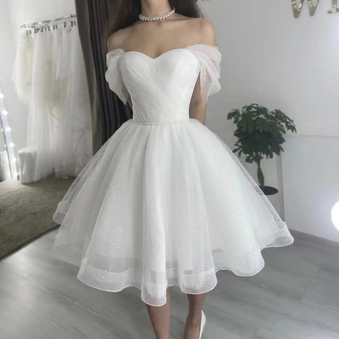 Looking for a dress that embodies elegance, style, and versatility? Our White Bridesmaid Dresses: Wedding Dress Lace Up Back Off The Shoulder Knee Length is the perfect choice for brides and bridesmaids who want a chic and fashionable look for any wedding celebration. This gown combines the classic charm of an off-the-shoulder neckline, a modern lace-up back, and a flirty knee-length hemline, creating an irresistible blend of tradition and contemporary fashion.