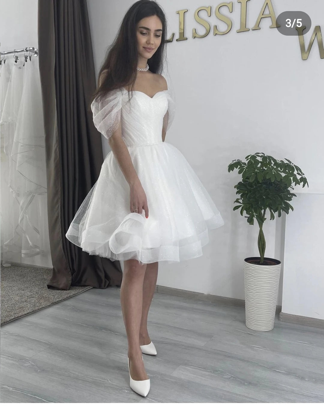 The knee-length hemline is the ultimate fusion of charm and practicality. It brings a playful edge to the traditional concept of wedding dresses, making it suitable for both formal and casual ceremonies. Whether you’re walking down the aisle at an elegant event or attending a relaxed outdoor celebration, this dress adapts effortlessly to any occasion. If you’re searching for wedding dresses near me, exploring wedding dress shops near me, or browsing online, this gown is bound to capture your heart.