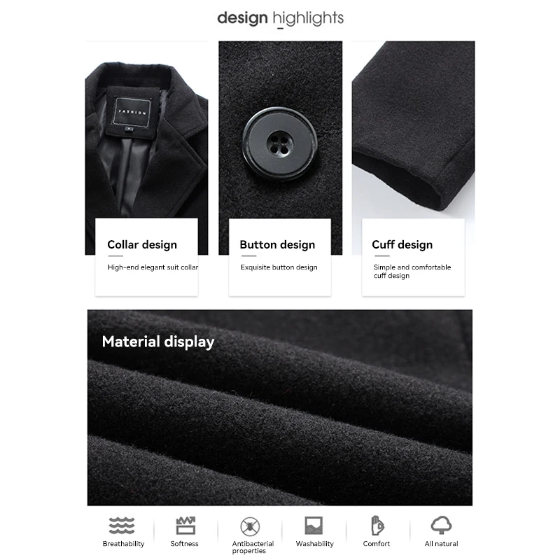 - Premium Wool Blend: Crafted from a high-quality wool blend, this coat offers excellent warmth and comfort, ideal for autumn and winter.