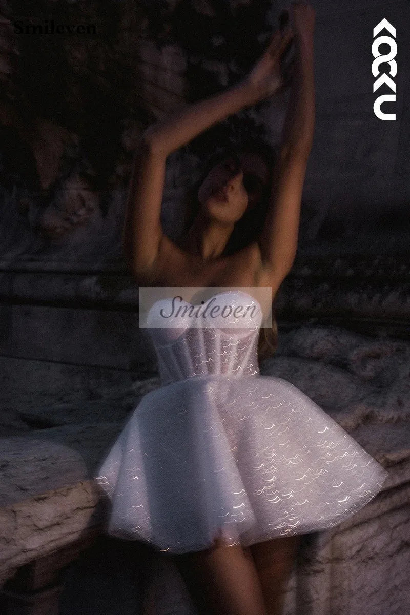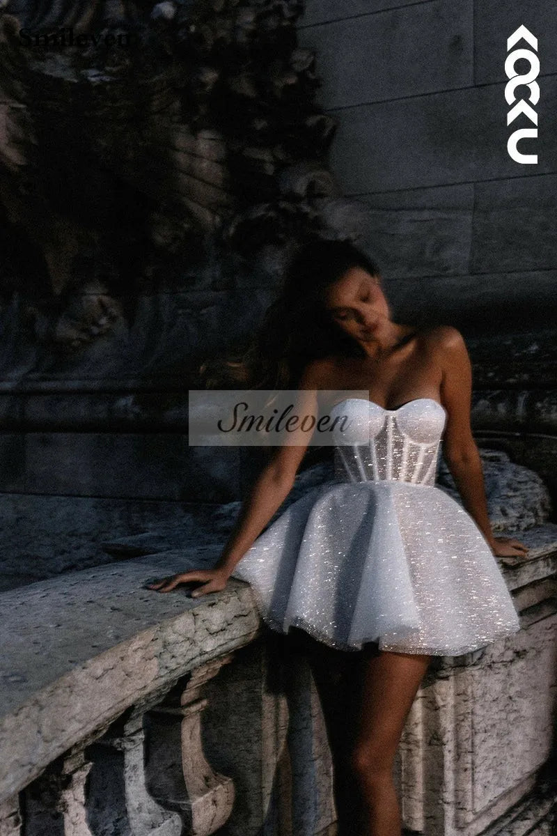Capture hearts and turn heads with our White Bridesmaid Dresses: Wedding Dress A-Line Sweetheart Neck Shiny Glitter—an iconic blend of elegance, sophistication, and modern charm. Designed for the bride who desires to stand out or the bridesmaid who wants to glow with confidence, this gown embodies a timeless allure that complements every wedding celebration.