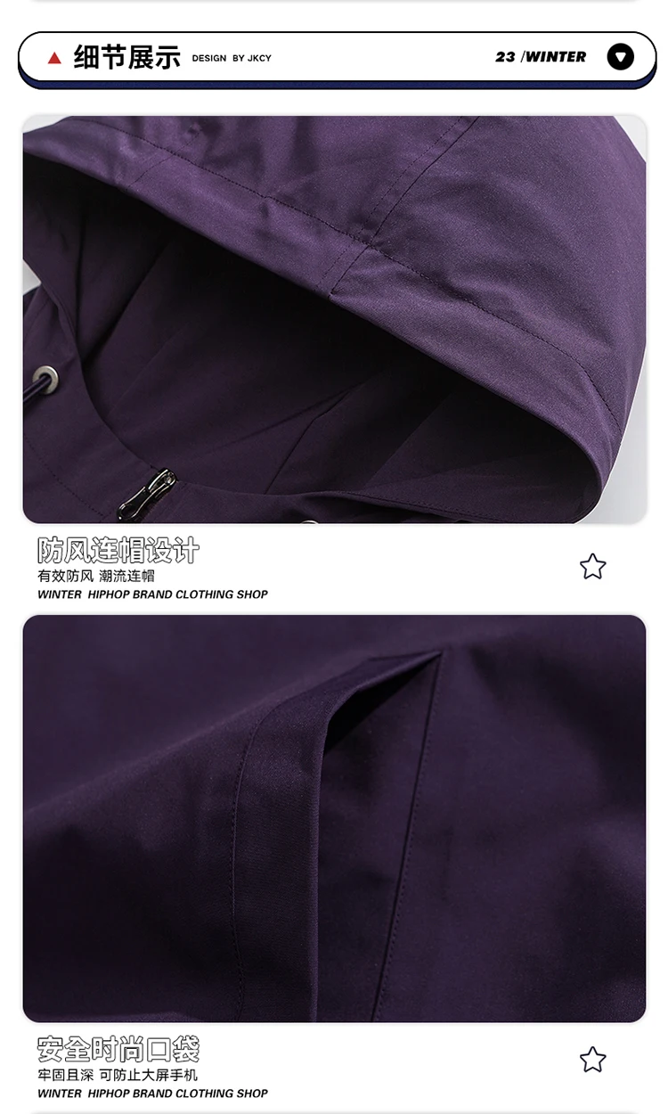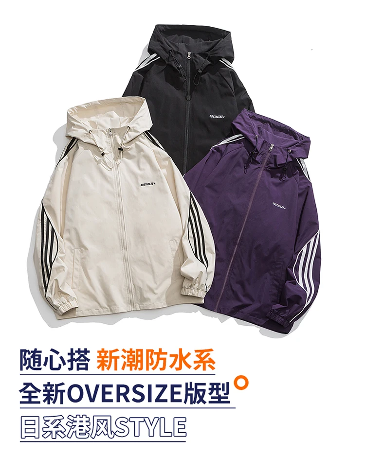 Spring Wind-Proof Hooded Jacket Outdoor Hiking Solid Color Couple Thin Outerwear Comfortable Fashion Casual Men's Clothing2024