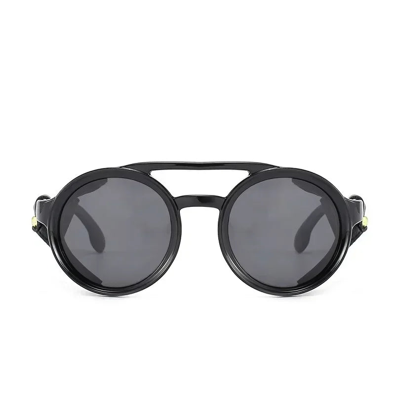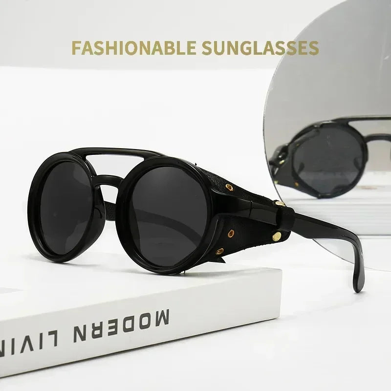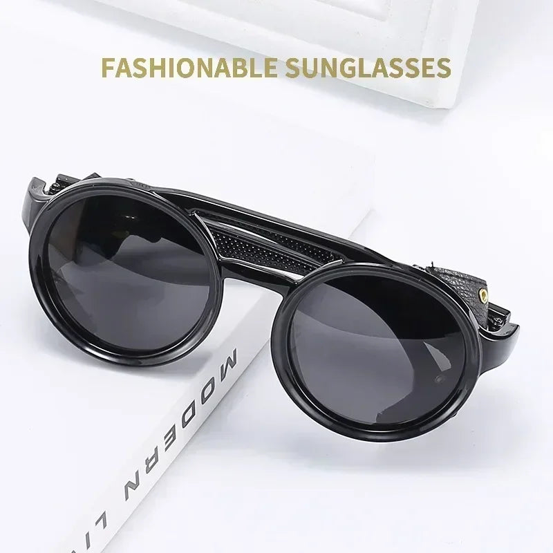Our round sunglasses with side leather detailing are inspired by iconic retro designs, offering a sophisticated yet edgy appeal. The round frame is flattering for a variety of face shapes, while the side leather accents add a distinctive touch that sets these glasses apart from the crowd.