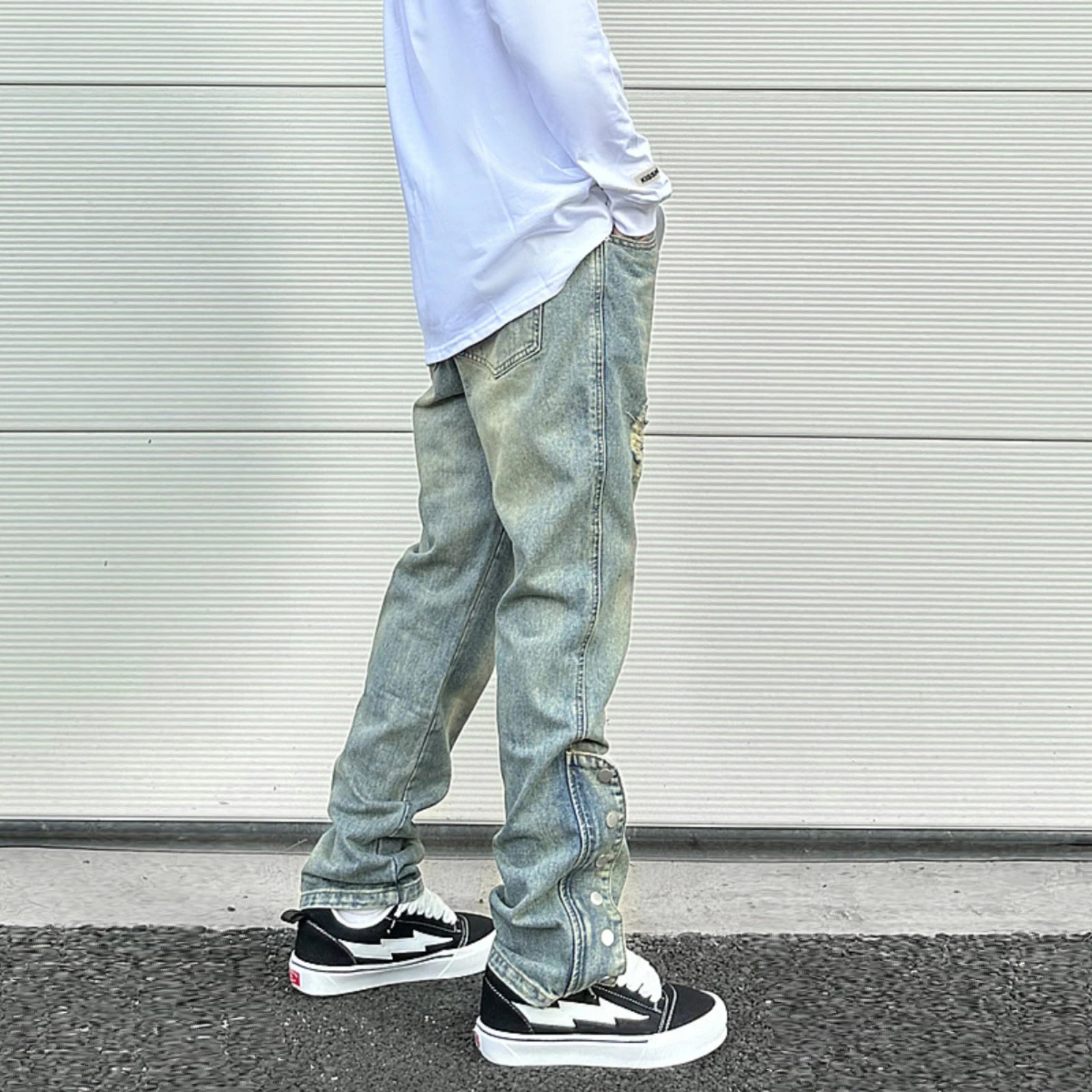 Unique Design with Side Zipper and Buckle: These jeans feature an innovative side zipper and buckle detail, enhancing their streetwear appeal. The distinct design sets them apart from standard men’s jeans, giving you a unique look that combines the best of amiri jeans and camo pants style.