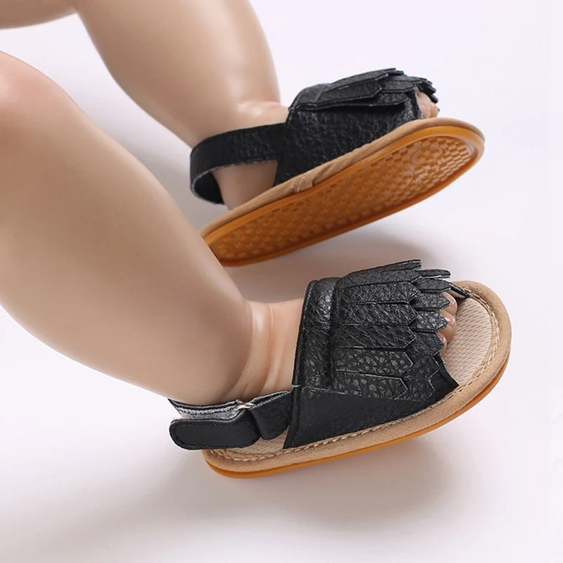 Summer Baby Girl Sandals Solid Fashion Outdoor Tassel Leather Sandal Anti-Slip Soft Sole T-Strap Shoes 0-18M