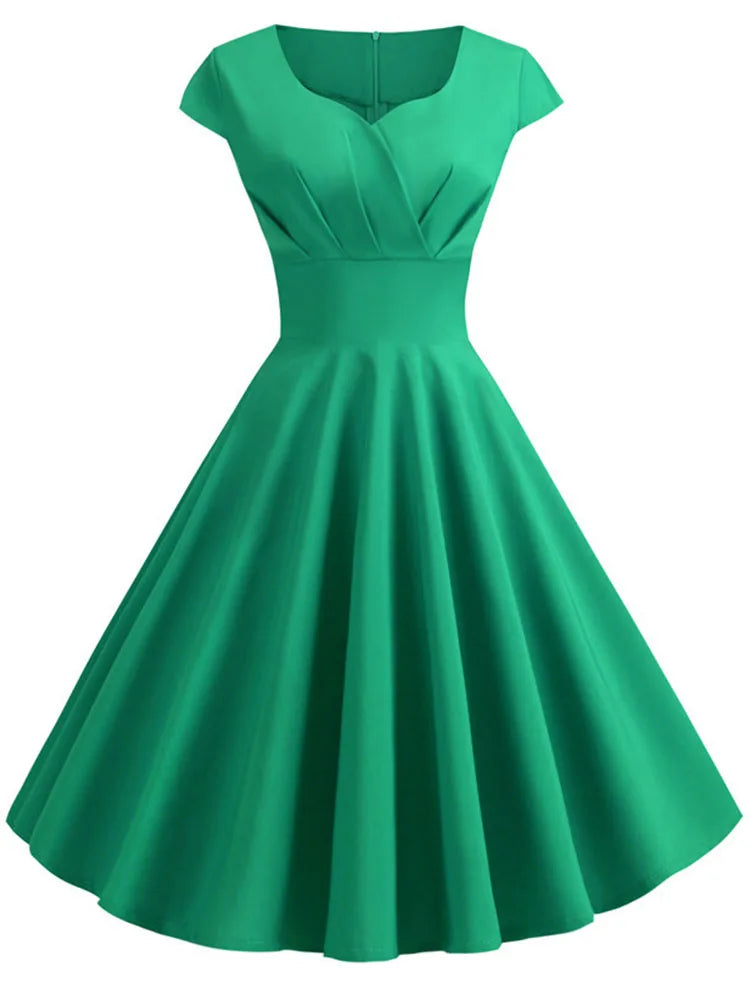Evening Dresses: Women Short Sleeve Hepburn 50s 60s Vintage Pin Up Rockabilly