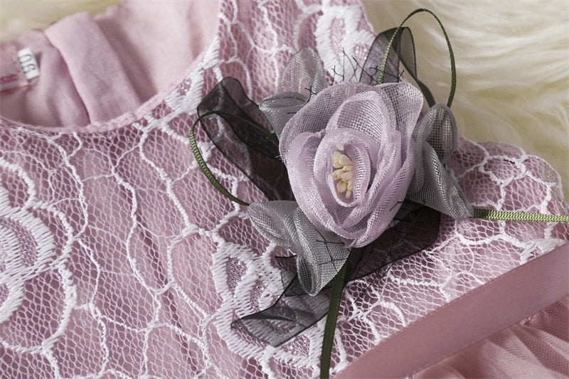 This beautiful dress features a delicate floral design with intricate lace details, creating a timeless and elegant look. The soft, breathable fabric ensures your child stays comfortable throughout the event, while the full skirt adds a touch of fairy-tale charm.