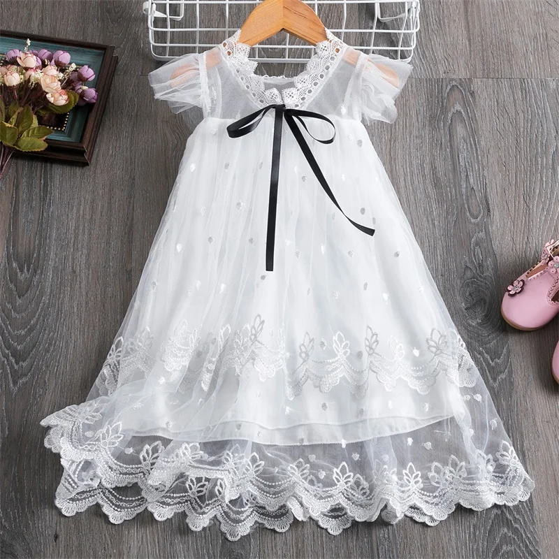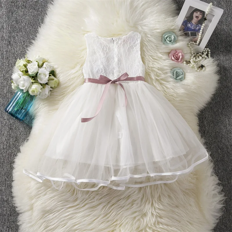 Summer White Flower 2-6T Baby Girls Princess Dresses For Weddings Elegant Kids