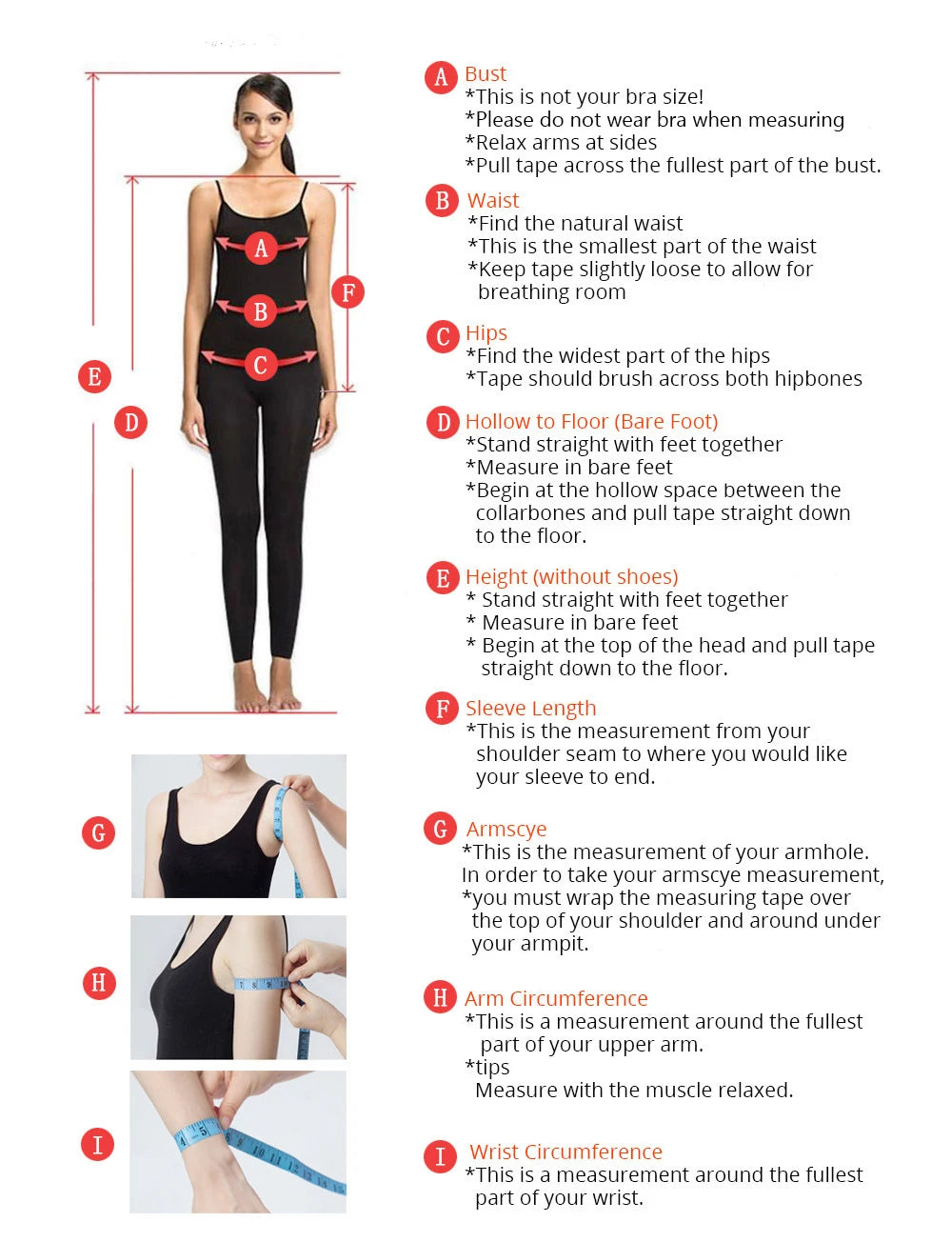 ★ We strongly suggest you find a professional tailor to measure for you carefully following the Custom Measurements Guideline before buying a dress online.