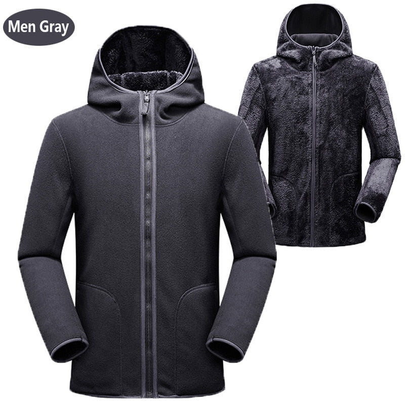 Unisex Reversible Hoodie Women Pullover Sweatshirts Winter Warm Polar/Coral Coats