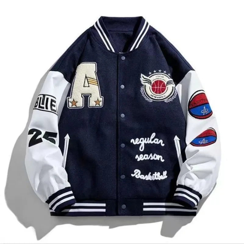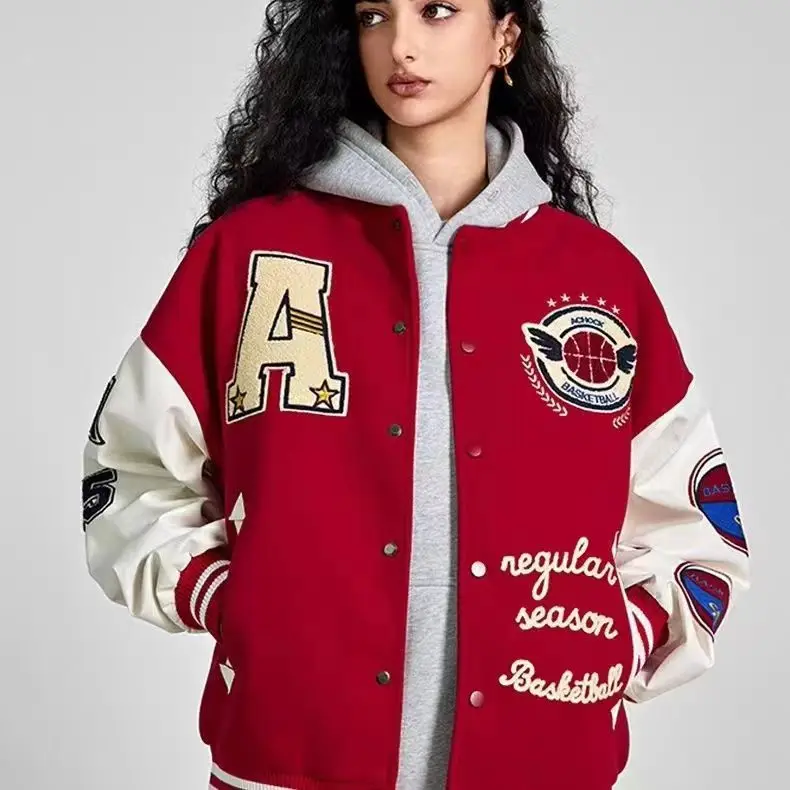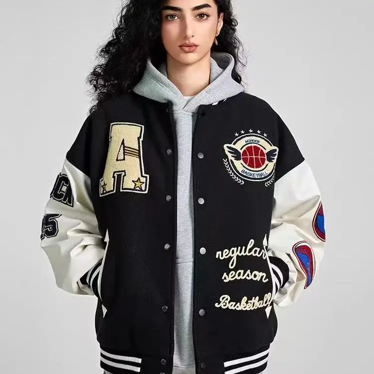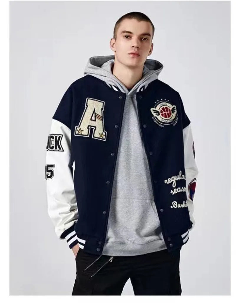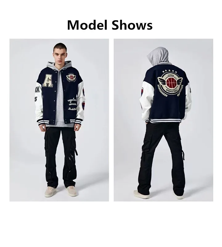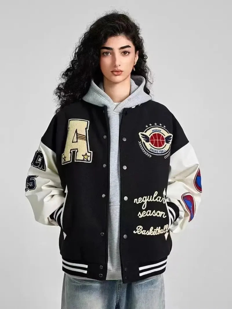 Timeless Design: Inspired by traditional varsity jackets, this piece features intricate embroidery and spliced detailing, offering a unique twist on a classic look. It’s a must-have for fans of letterman jackets and bomber jackets.