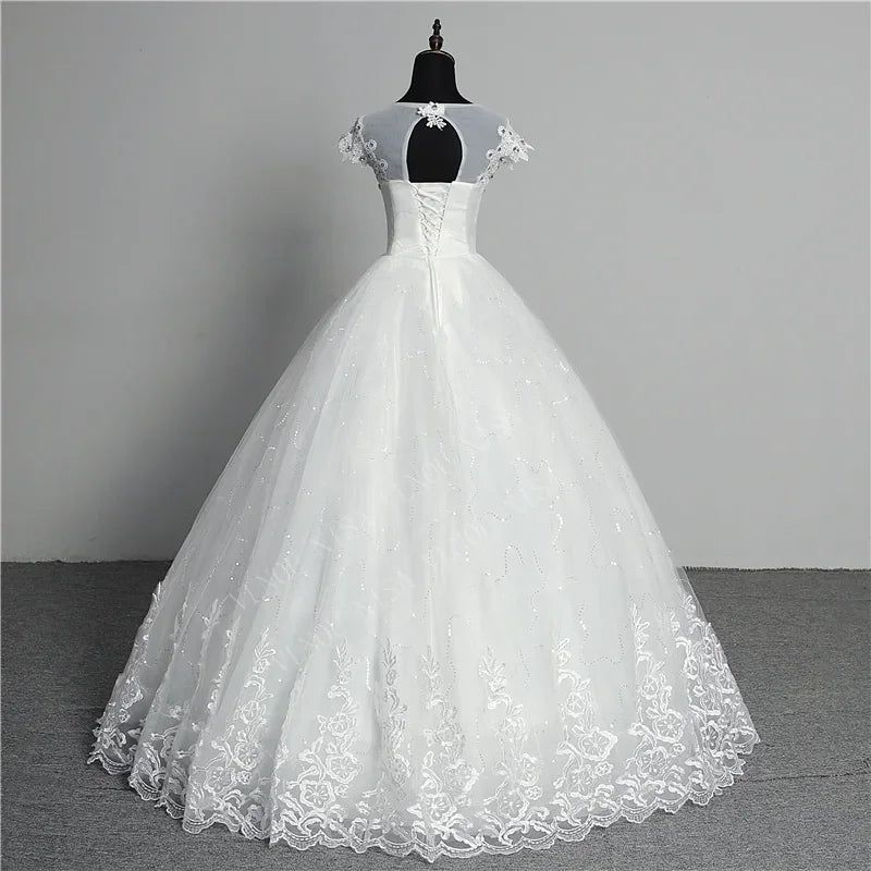 Elegance and Comfort with Our White Bridesmaid Dresses: Plus Size Wedding Dress with Sleeve O Neck Brides Dress Floor