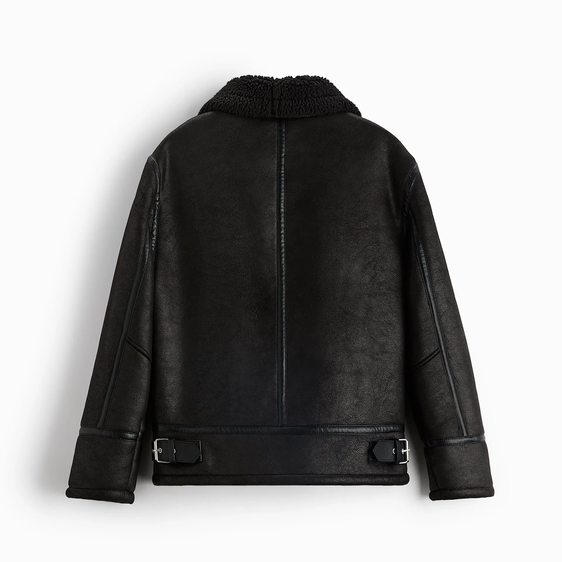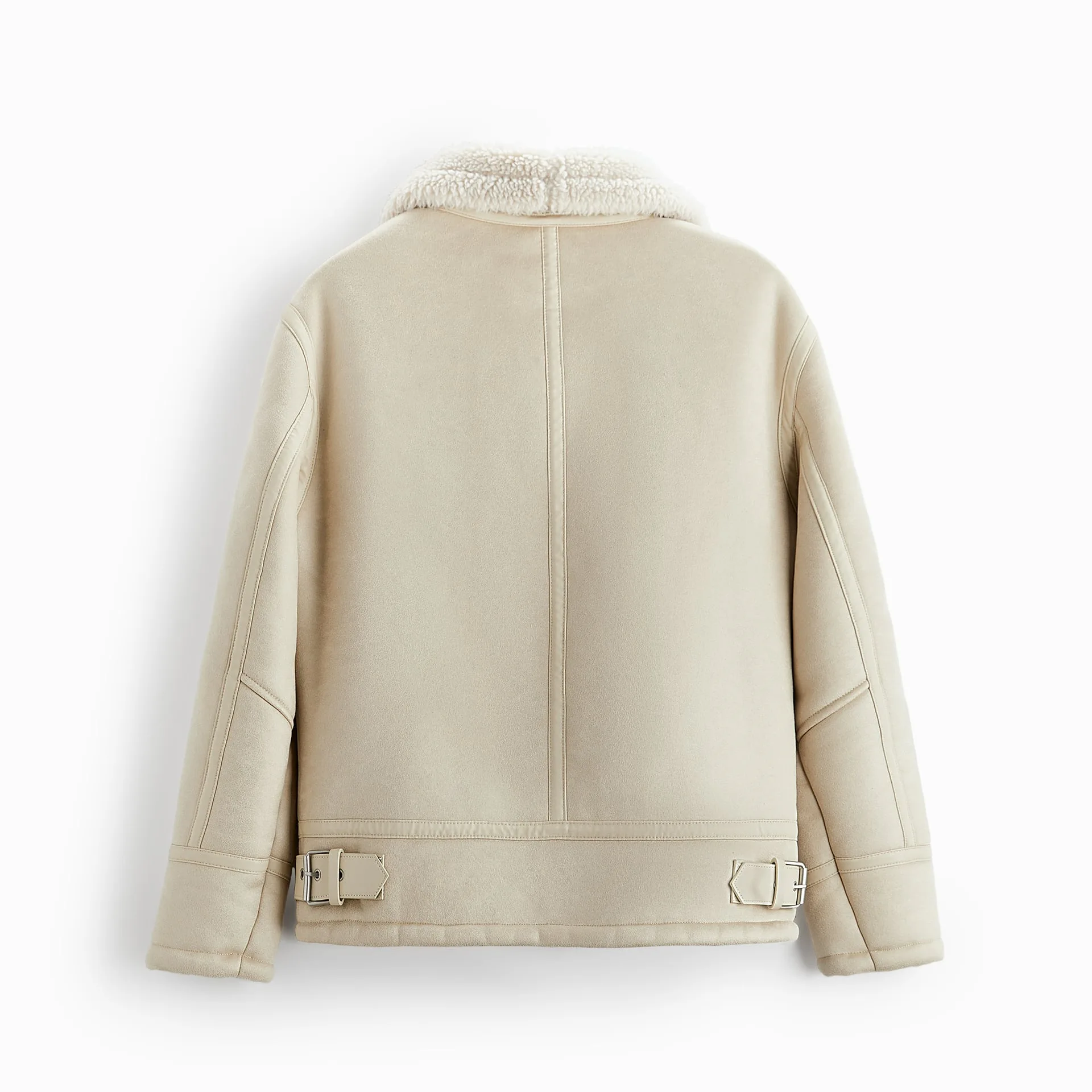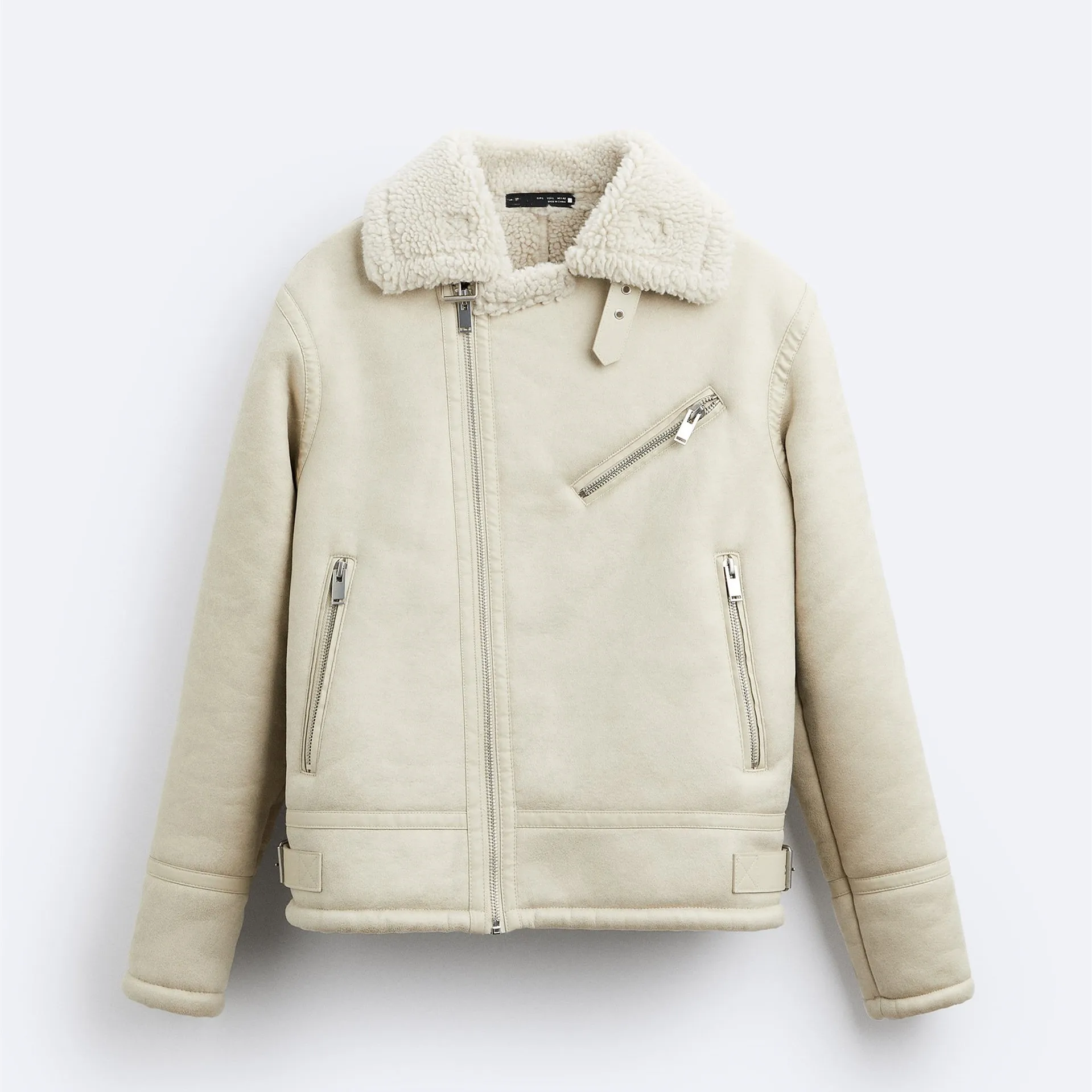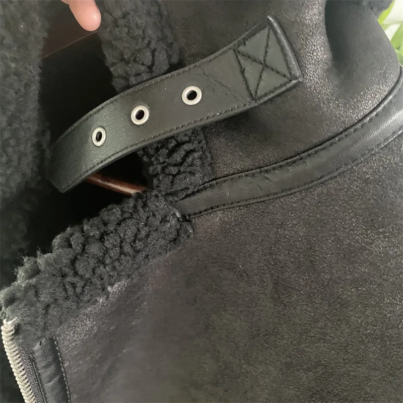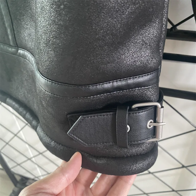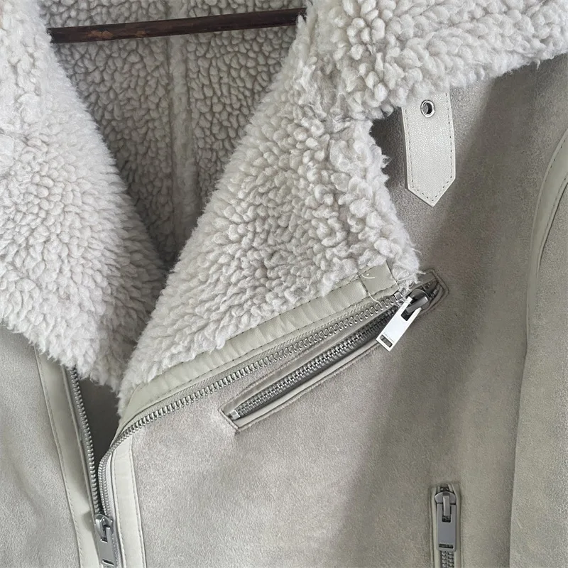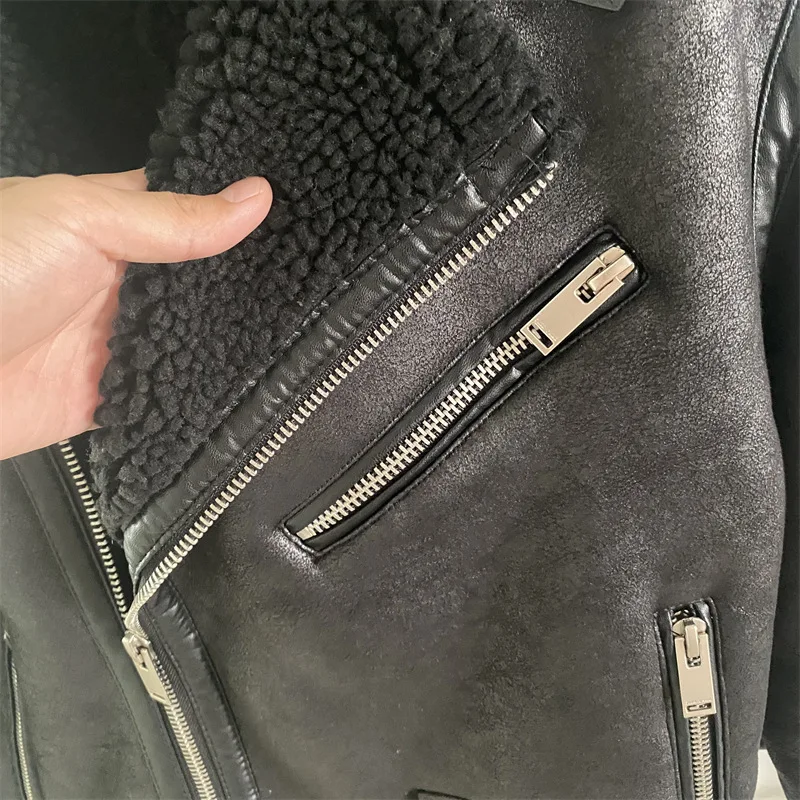 Warm Winter High-quality Lapel Suede Cashmere Piping Double-sided Motorcycle Jacket