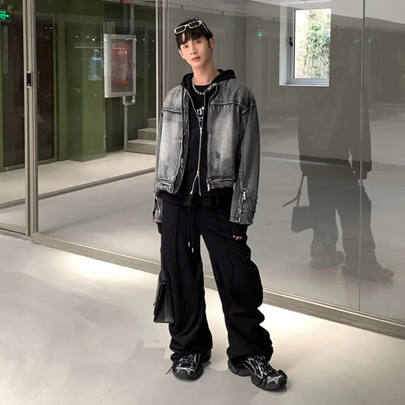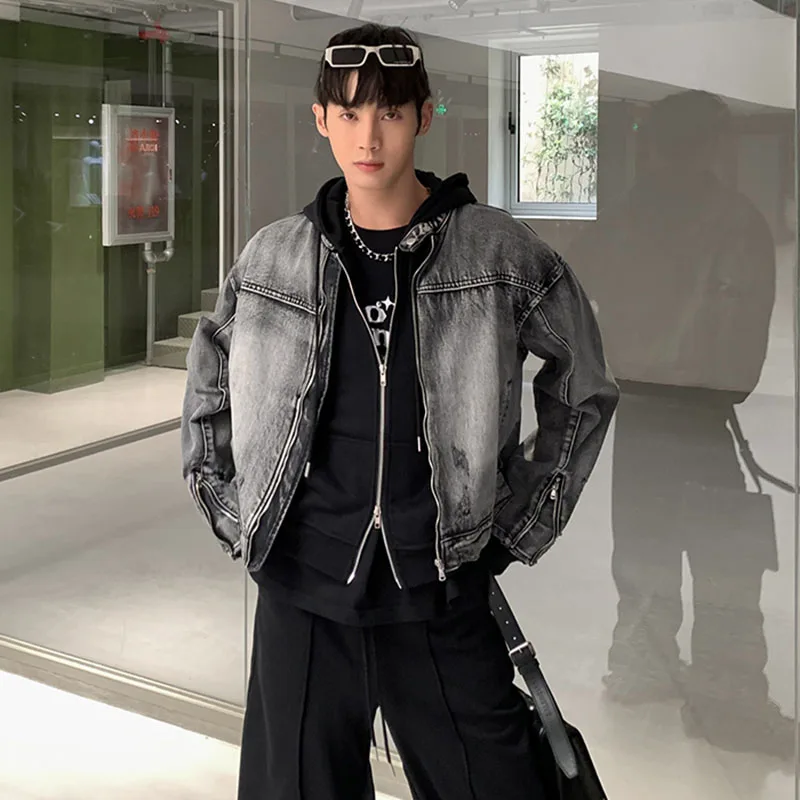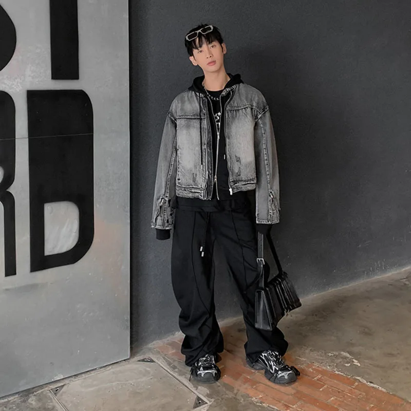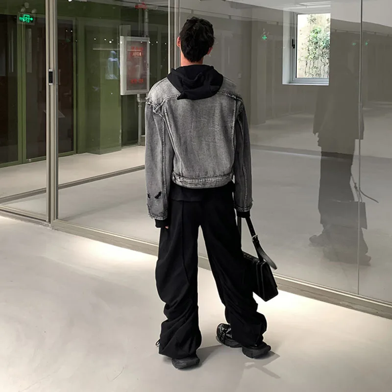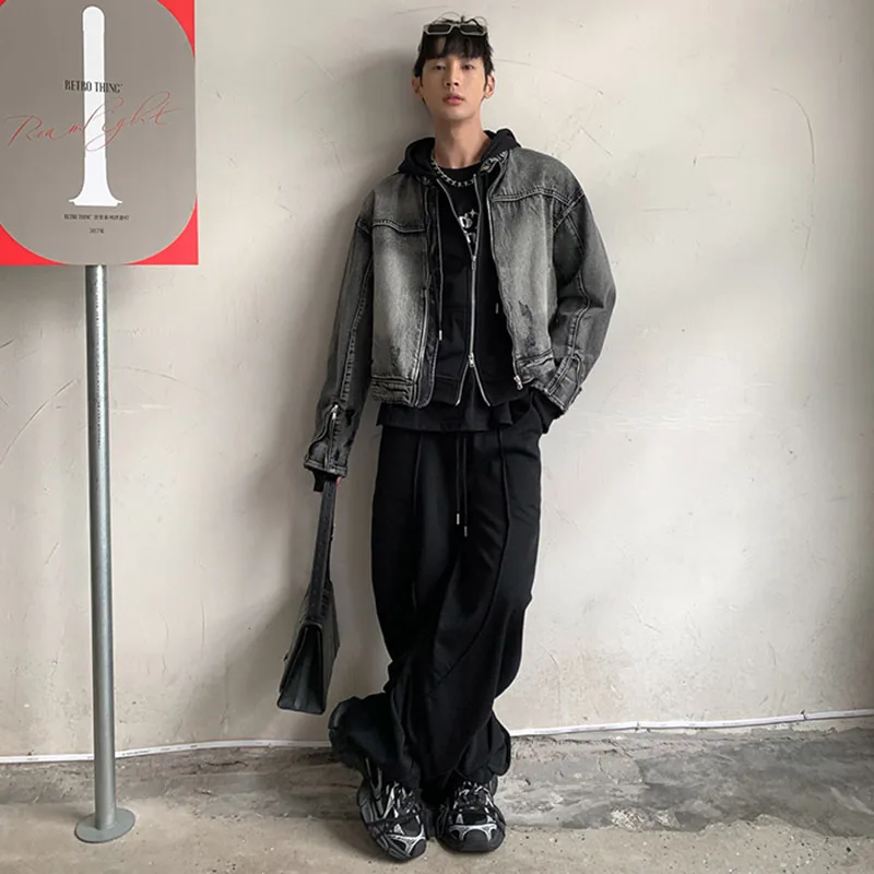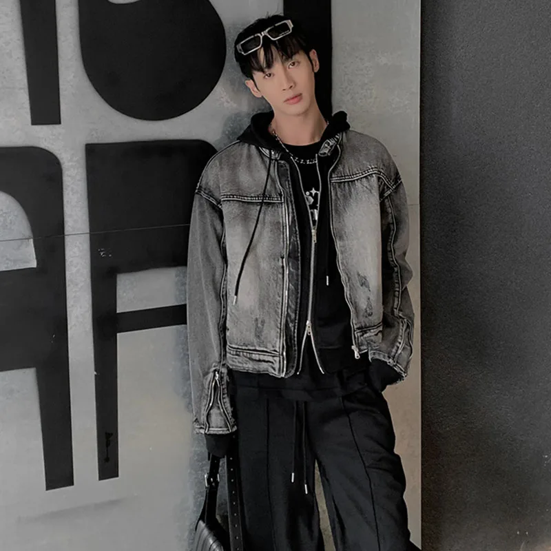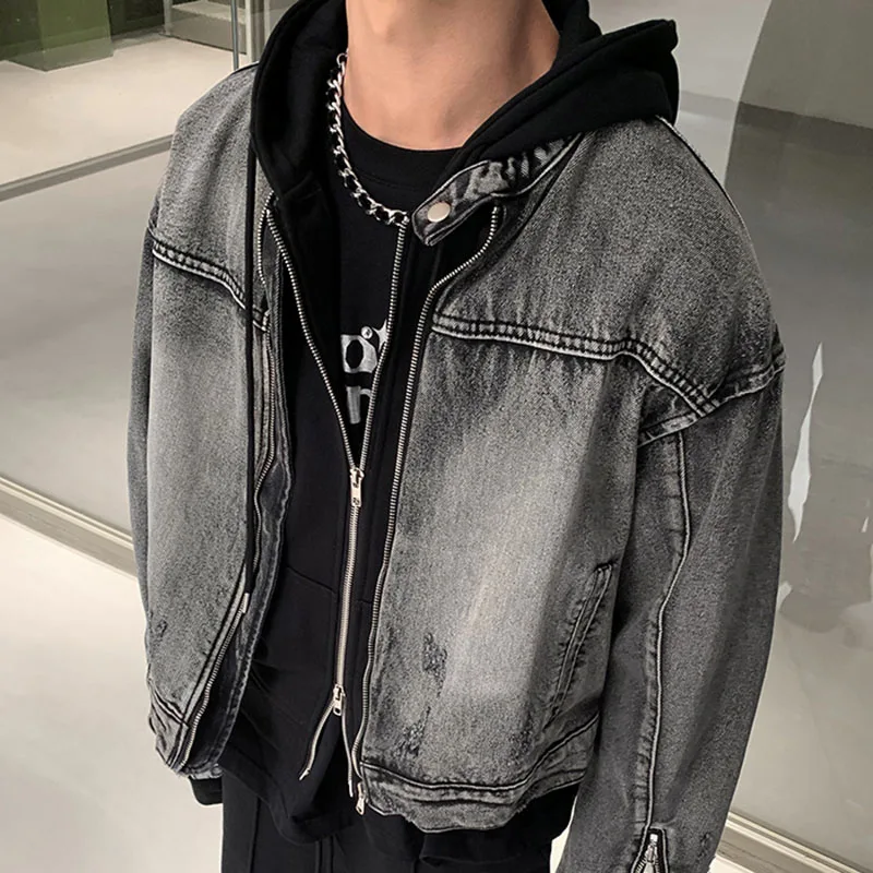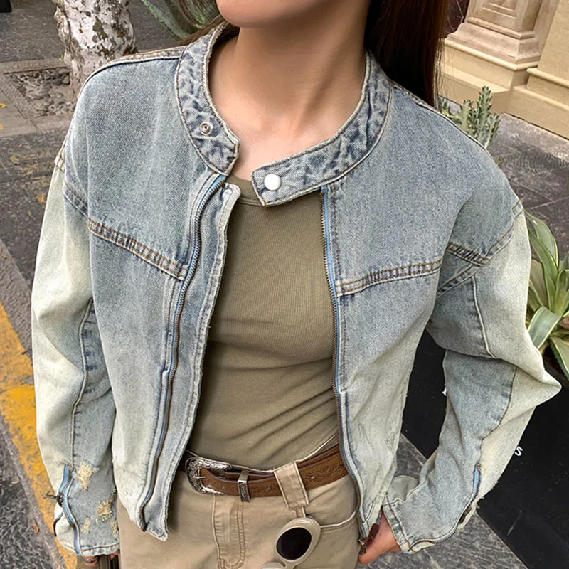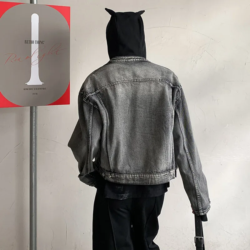 Washed Denim Jacket Men Women American Vintage Cropped Cowboy Coat