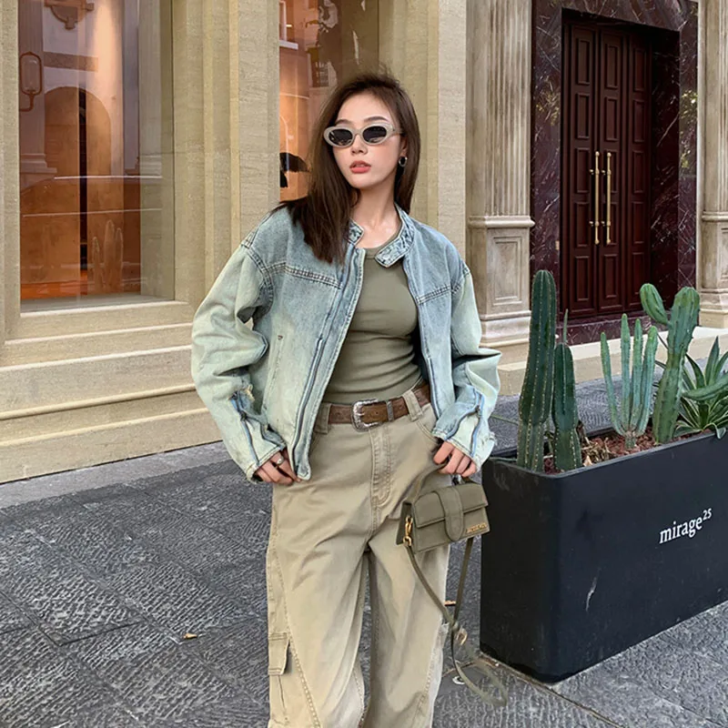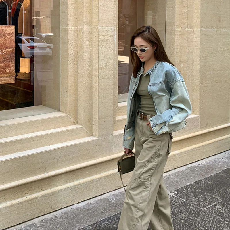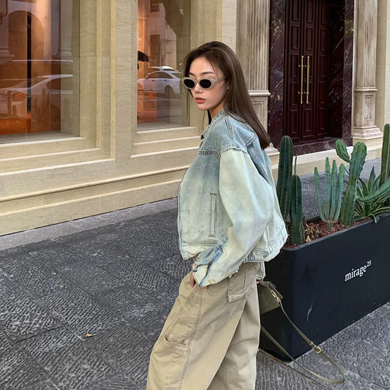 Whether you're searching for a statement piece or a reliable everyday jacket, this cropped denim coat delivers on both style and function. The washed finish not only enhances its vintage appeal but also ensures that each wear feels like your favorite old jacket.