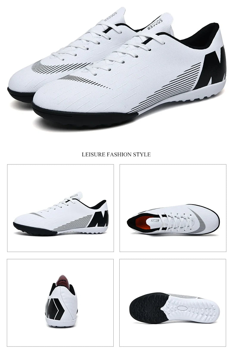 White Men's Football Boots Turf Sneakers Low-cut Soccer Shoes for Men Outdoor Non-slip Children's Football Shoes chuteira futsal