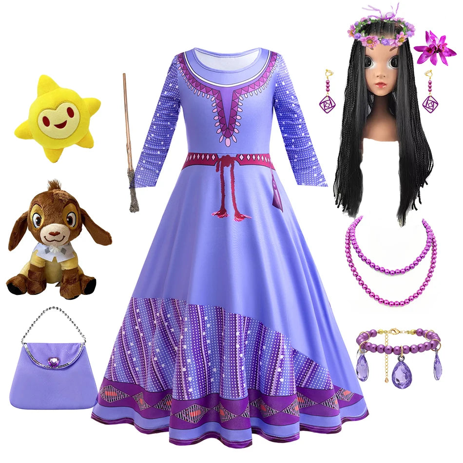 Transform your little one into her favorite character with our Wish Princess Dress. Inspired by beloved princesses, this Asha cosplay outfit in a stunning purple print is perfect for young girls who dream of magical adventures.