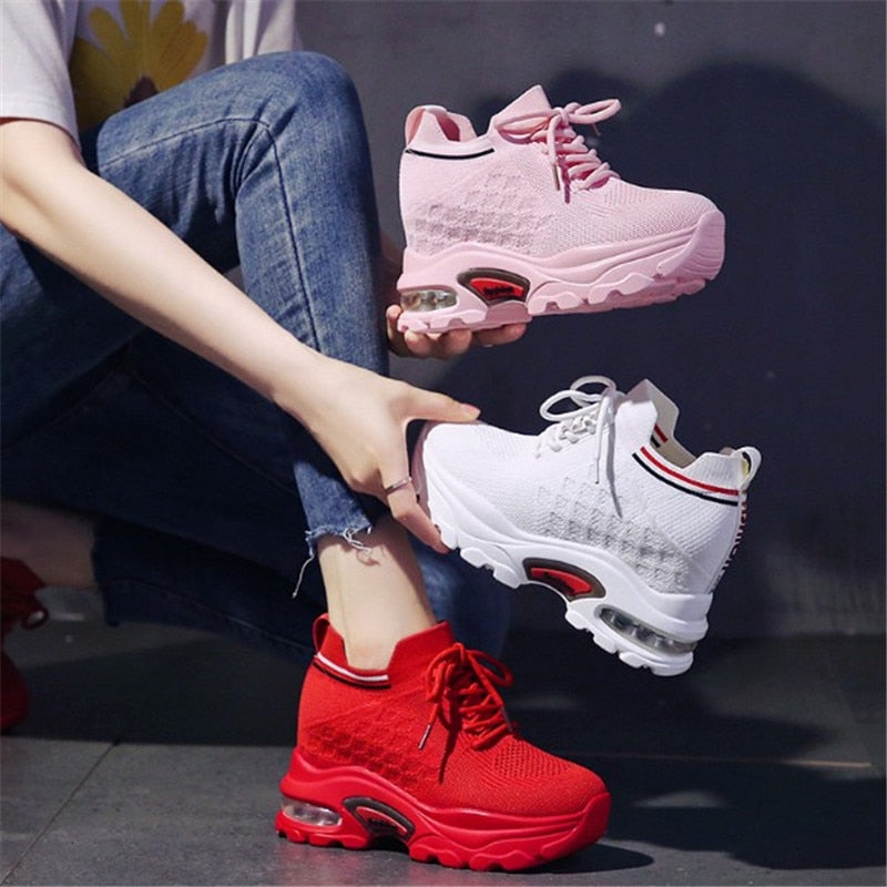 Woman Ulzzang Fashion Platform Sneakers Wedge Shoes For Women 8.5cm Height