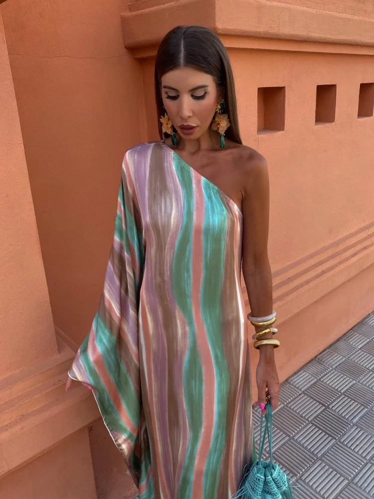 Introducing our stunning Evening Wear Dresses collection, featuring the eye-catching Women Colorful Tie Dyed Striped Print Long Dress. This dress is designed to captivate and inspire, offering a perfect blend of vibrant colors and elegant design. Whether you're looking for prom gowns near me, searching for the best formal dress stores near me, or simply in need of a show-stopping piece for a special event, this dress has you covered.