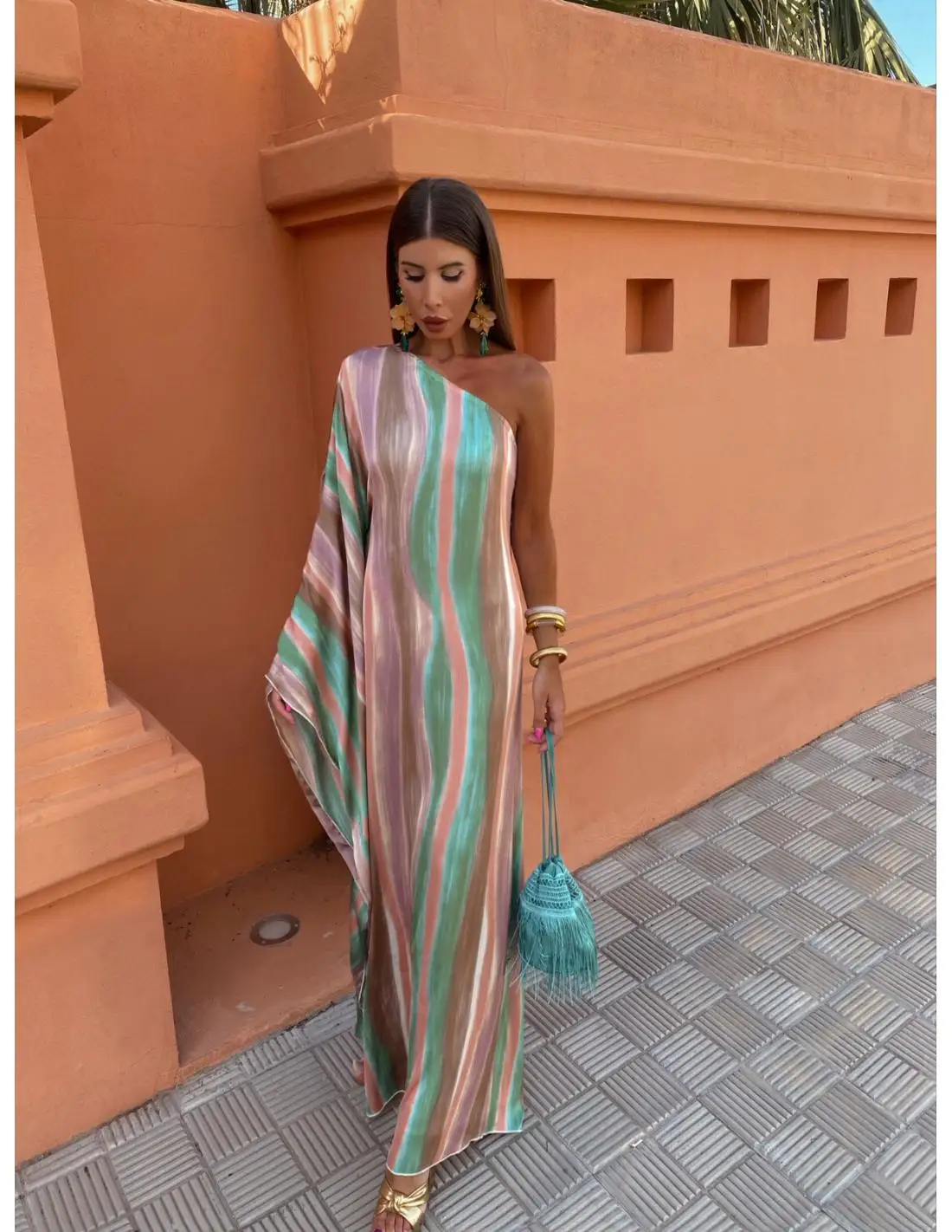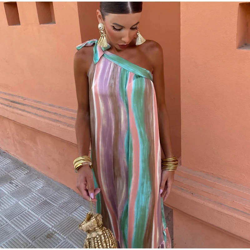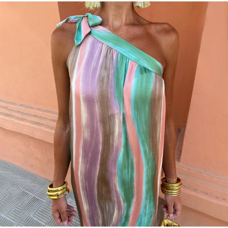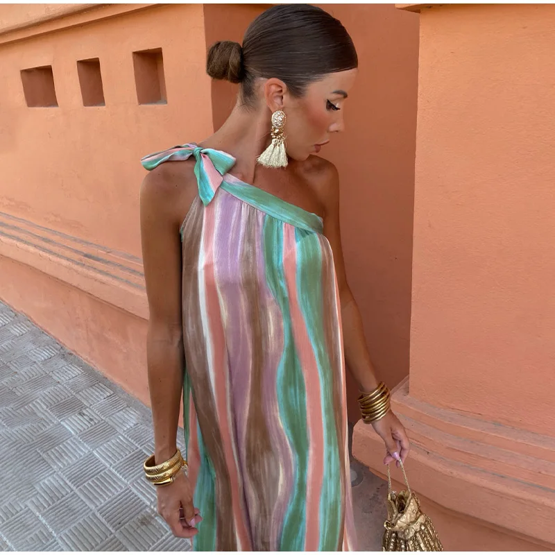 The Women Colorful Tie Dyed Striped Print Long Dress is a masterpiece of design and craftsmanship. Its colorful tie-dyed pattern is both trendy and timeless, making it a standout choice for any occasion. The long, flowing silhouette adds a touch of elegance, while the striped print provides a modern twist. This dress is perfect for spring formal dresses, offering a refreshing and stylish look that is sure to turn heads.