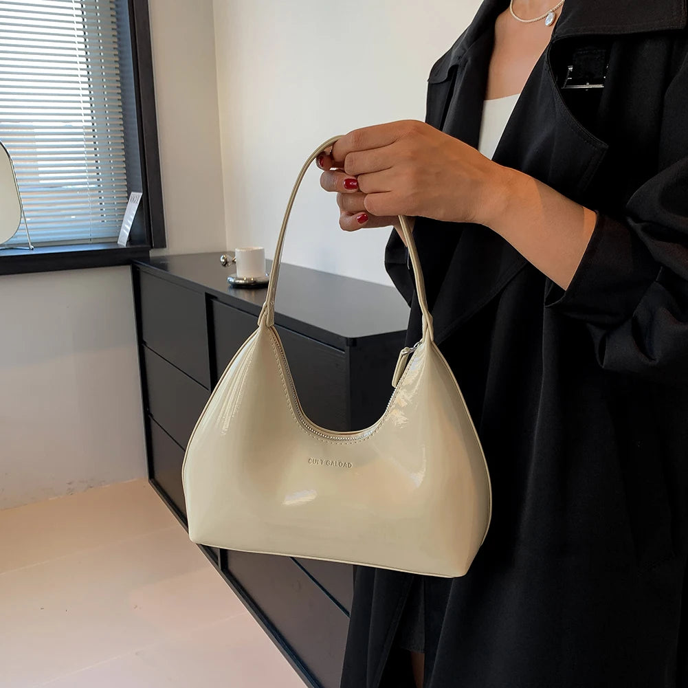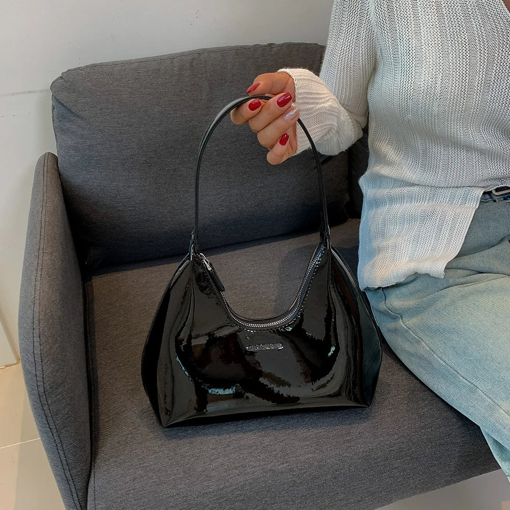 Women Patent Leather Tote Bag Versatile Fashion Shoulder Bag Casual Satchel Hobo Bag Zipper Armpit Bag Girl Shopper Purse Features: 1.Chic and Versatile: Our fashionable patent leather tote bag is perfect for daily use, suitable for any occasion. It complements any outfit, showcasing your unique taste. Handcrafted with durable materials, it offers long-lasting quality. It also doubles as a casual shoulder bag for travel, shopping, and vacations. 2.Spacious and Organized: Our crescent bag provides ample space to store your travel and daily essentials such as smartphones, glasses, cosmetics, cards, MP3 players, books, and more. It caters to your everyday storage needs, ensuring everything is within reach and well-organized. 3.Thoughtful Gift Option: The fashion satchel hobo bag makes a wonderful gift for women, suitable for occasions like birthdays, Mother's Day, International Women's Day, Christmas, Valentine's Day, and more. Its stylish design and practicality make it an ideal choice for presenting in a gift box, showing your care and appreciation. 4.Durable and Water-resistant: Crafted with a sturdy leather exterior and a soft interior, our women's zipper armpit bag is not only durable but also waterproof. It can withstand daily use and ensures the safety of your belongings, regardless of weather conditions. 5.Fashionable and Timeless: The combination of its sleek, minimalist design and patent leather material gives this top handle bag a fashionable and timeless appeal. It effortlessly adds a touch of elegance to your ensemble, making it a versatile accessory that complements various styles and occasions.