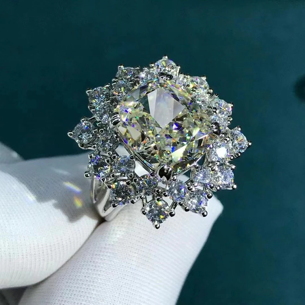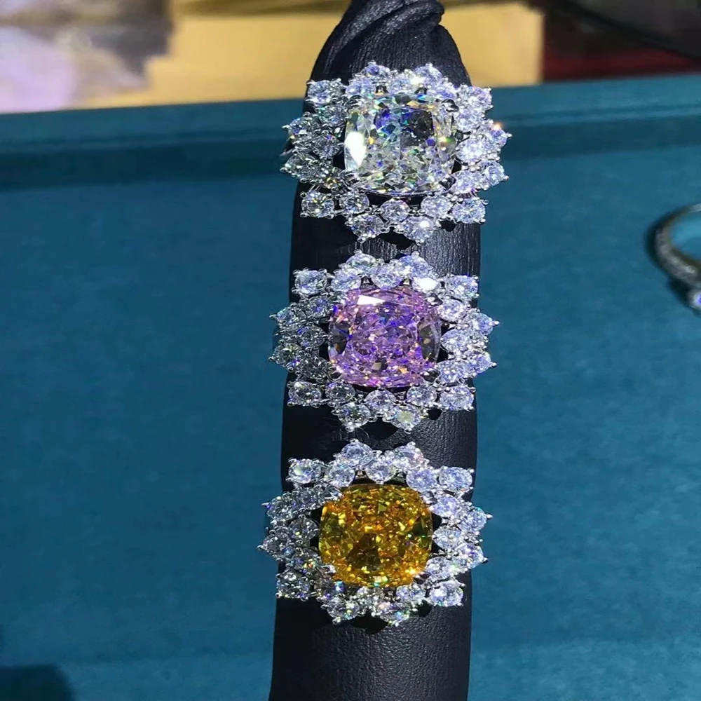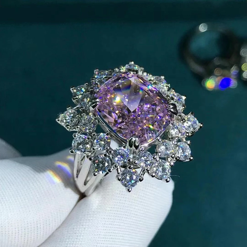Exquisite Solid 925 Sterling Silver 3EX Cushion Cut 6CT VVS Pink Created Moissanite Engagement Ring