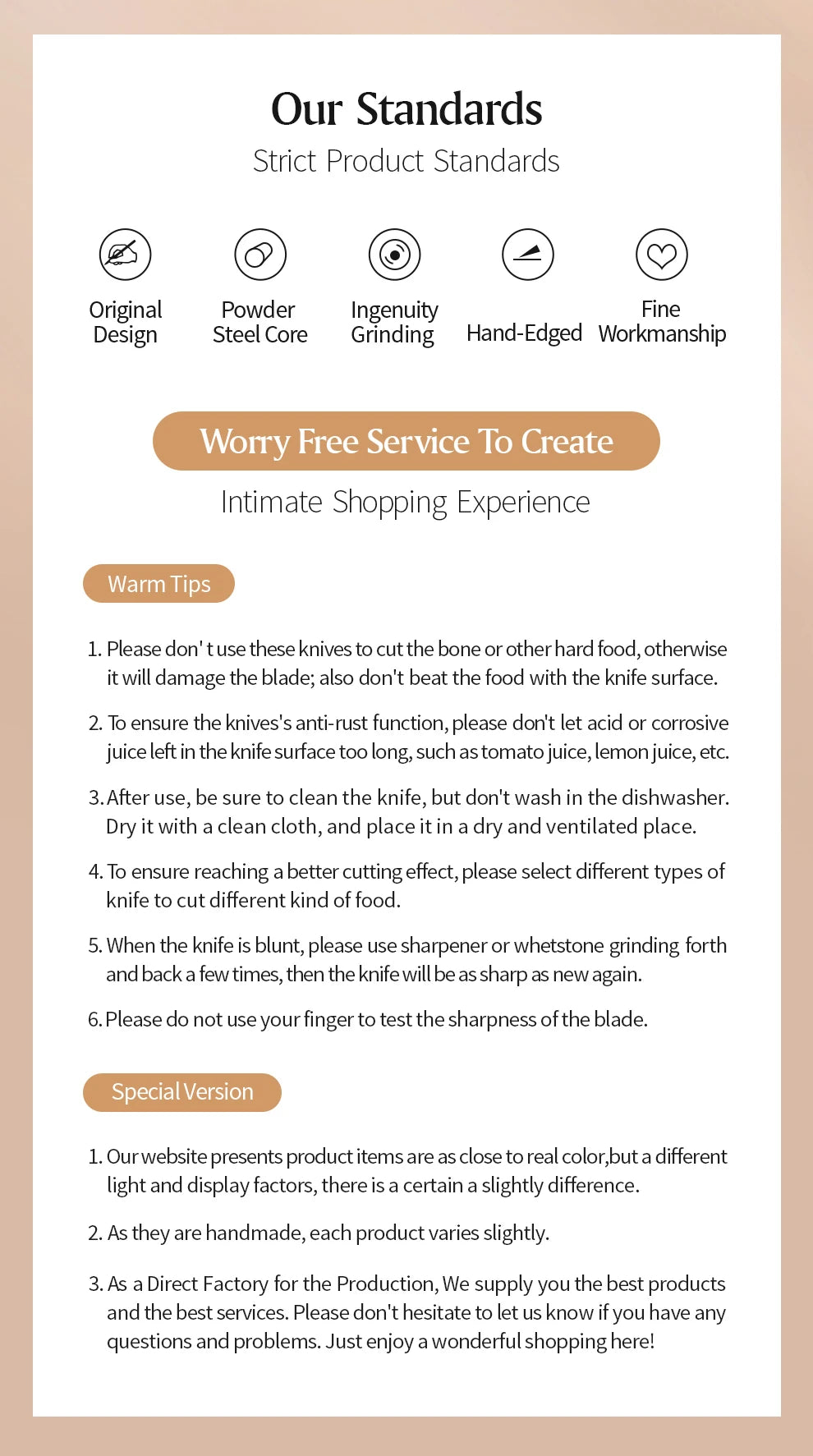 At our store, we focus on providing high-quality kitchen tools that last. Our Damascus steel knife set is expertly crafted for those who appreciate precision and craftsmanship in the kitchen. Unlike ordinary ninja knife sets or henkel knives, this set combines functionality with beauty, making it a perfect gift or a worthy addition to your kitchen.
