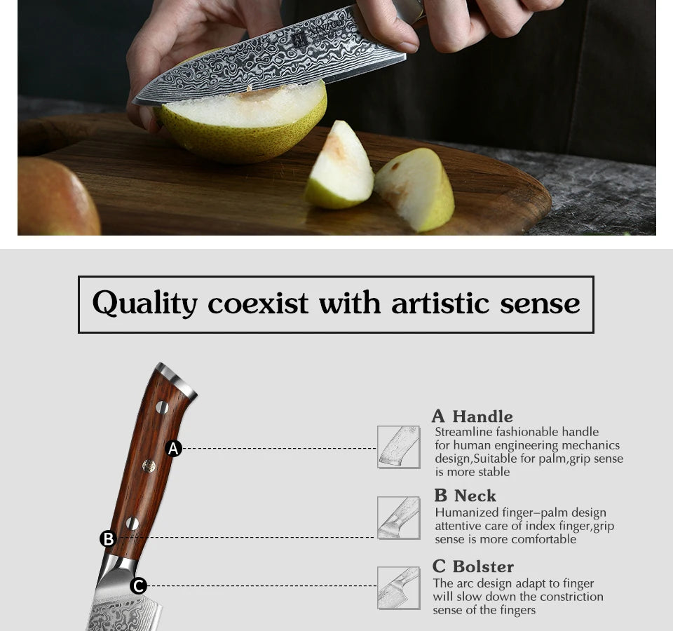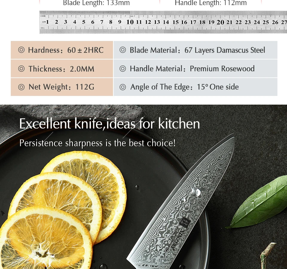 - Versatile Functionality: This 5'' knife is ideal for a variety of tasks, from slicing and dicing to trimming, making it one of the most versatile kitchen knives you can own.