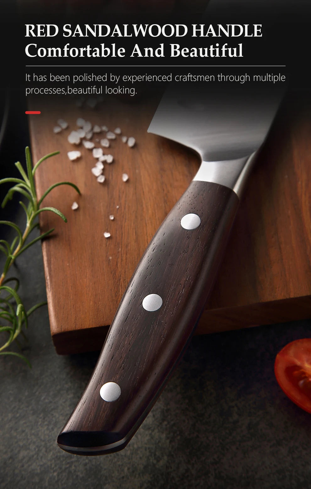 Premium Stainless Steel: Crafted from high-quality DIN 1.4116 stainless steel, this knife offers exceptional durability and corrosion resistance. You can trust this santoku knife to maintain its sharpness through countless uses, making it a standout choice in any set of cutlery.