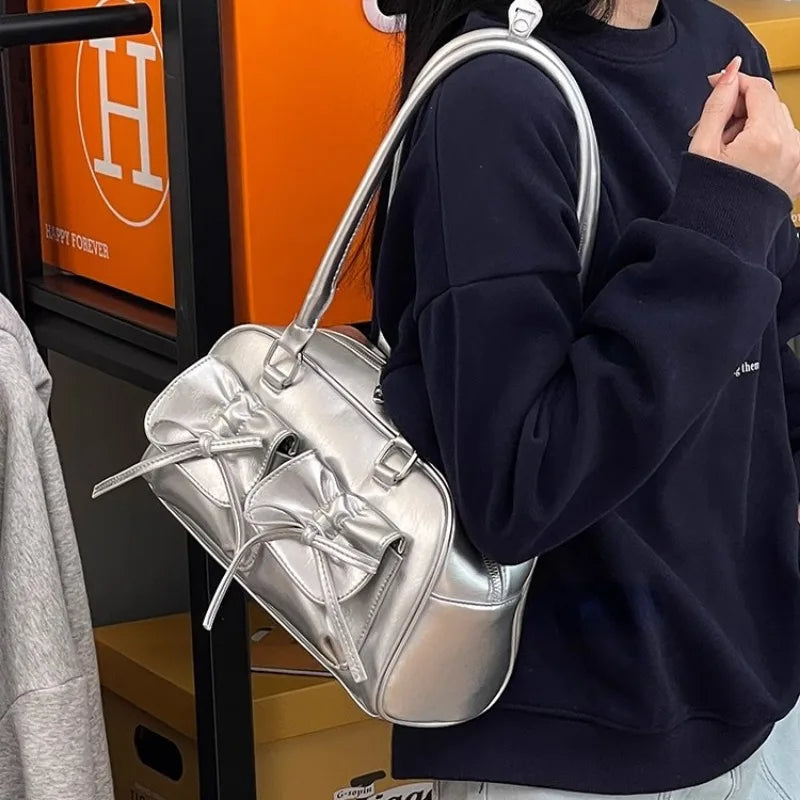 Silver Pleated Women's Shoulder Bag: Elegant, Gentle, and Fashionable Korean Leather