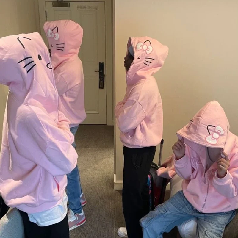 Y2K Style Zip Up Hoodie Women Men Cute Print Oversized Hooded Streetwear Casual