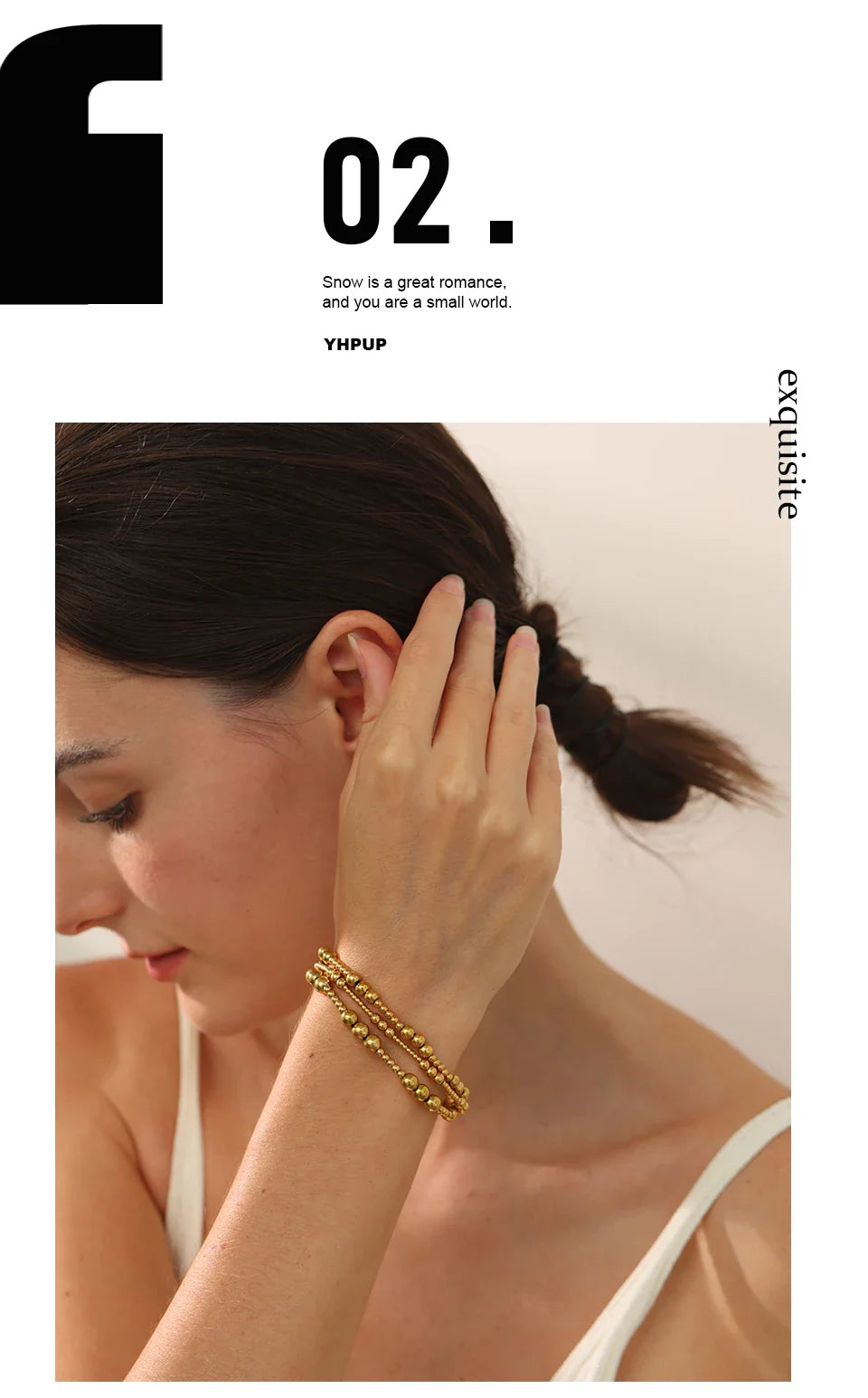 Yhpup 3/4/5/6 MM Stainless Steel Beads Daily Handmade Elastic Bracelet Bangle Waterproof Wrist Wholesale Gold Color Jewelry Men
