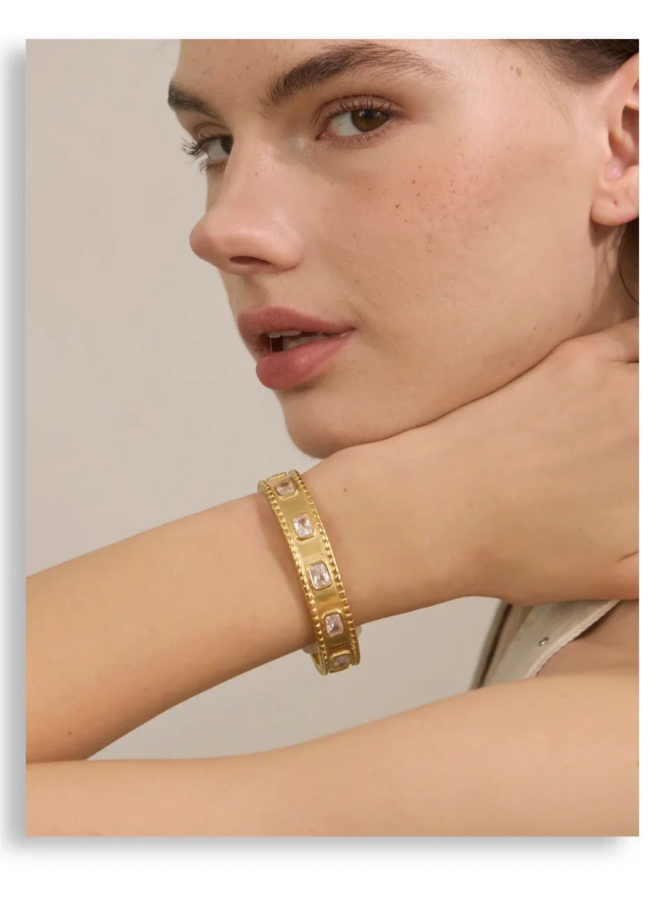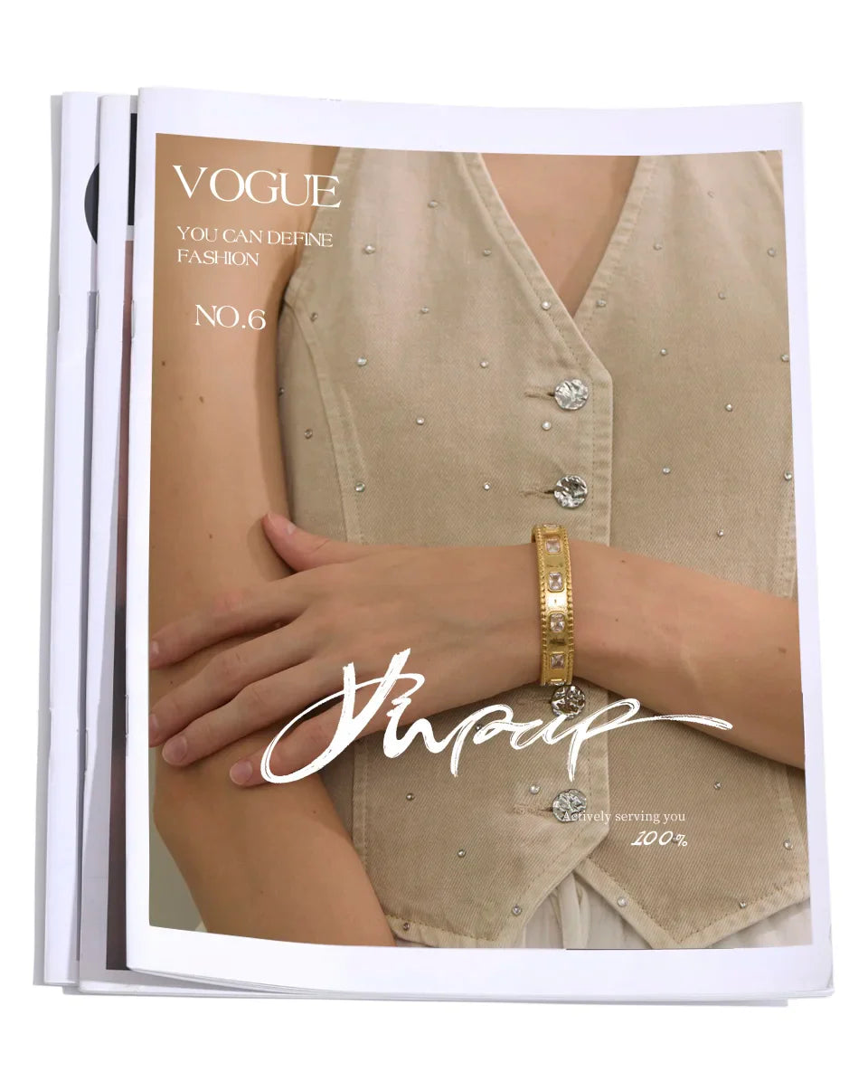 Yhpup 62mm High Quality Stainless Steel Square Zirconia Cuff Bracelet Bangle Trending Texture Premium Jewelry Recommend
