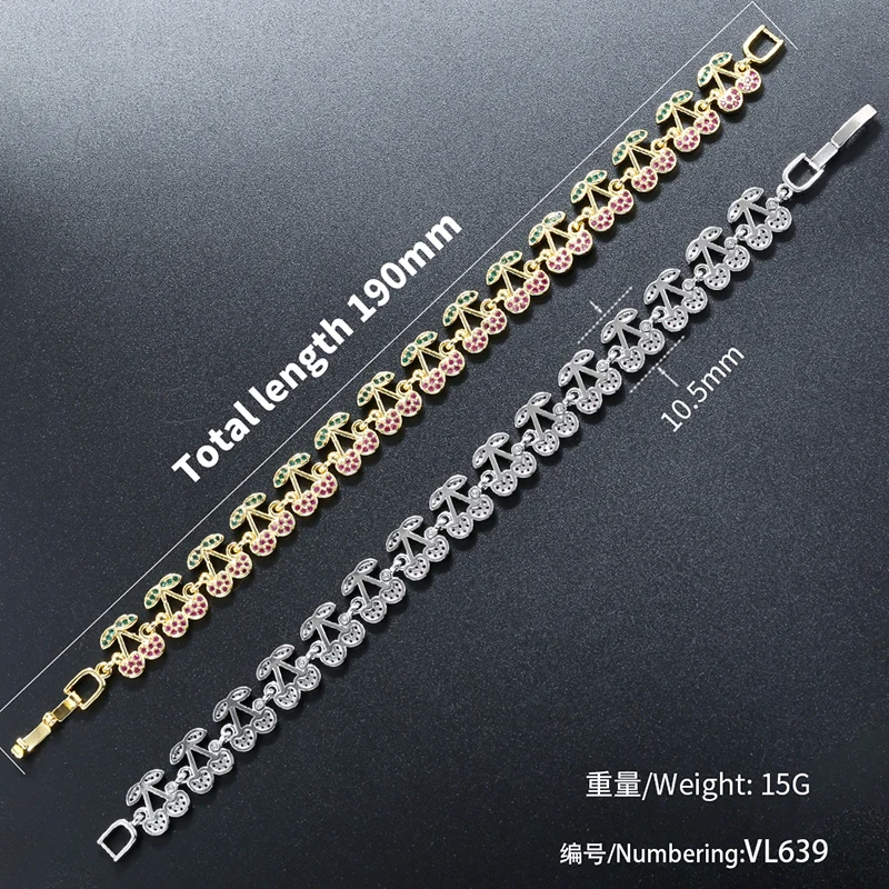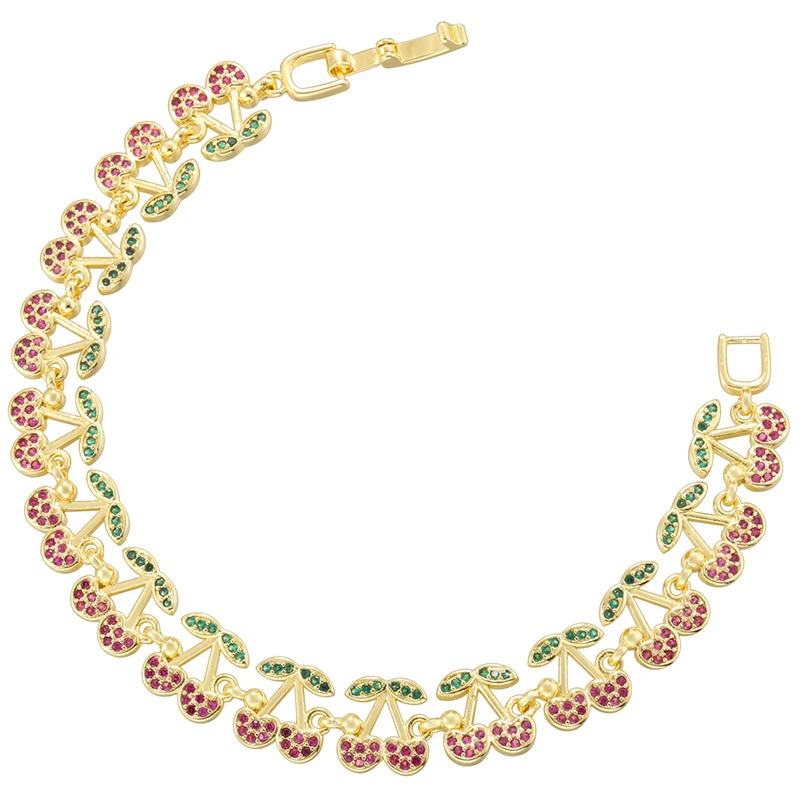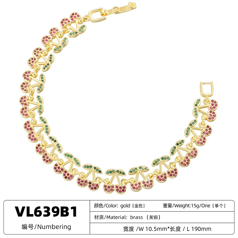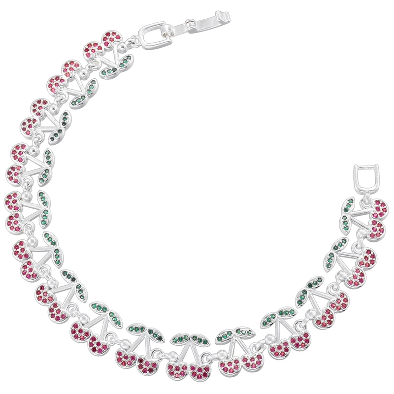 ZHUKOU Korea Fashion Red Cherry Zirconia Bracelet Women's Dopamine Style Jewellery Party Accessories:VL639